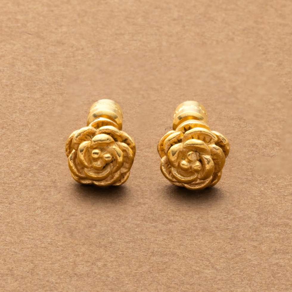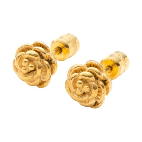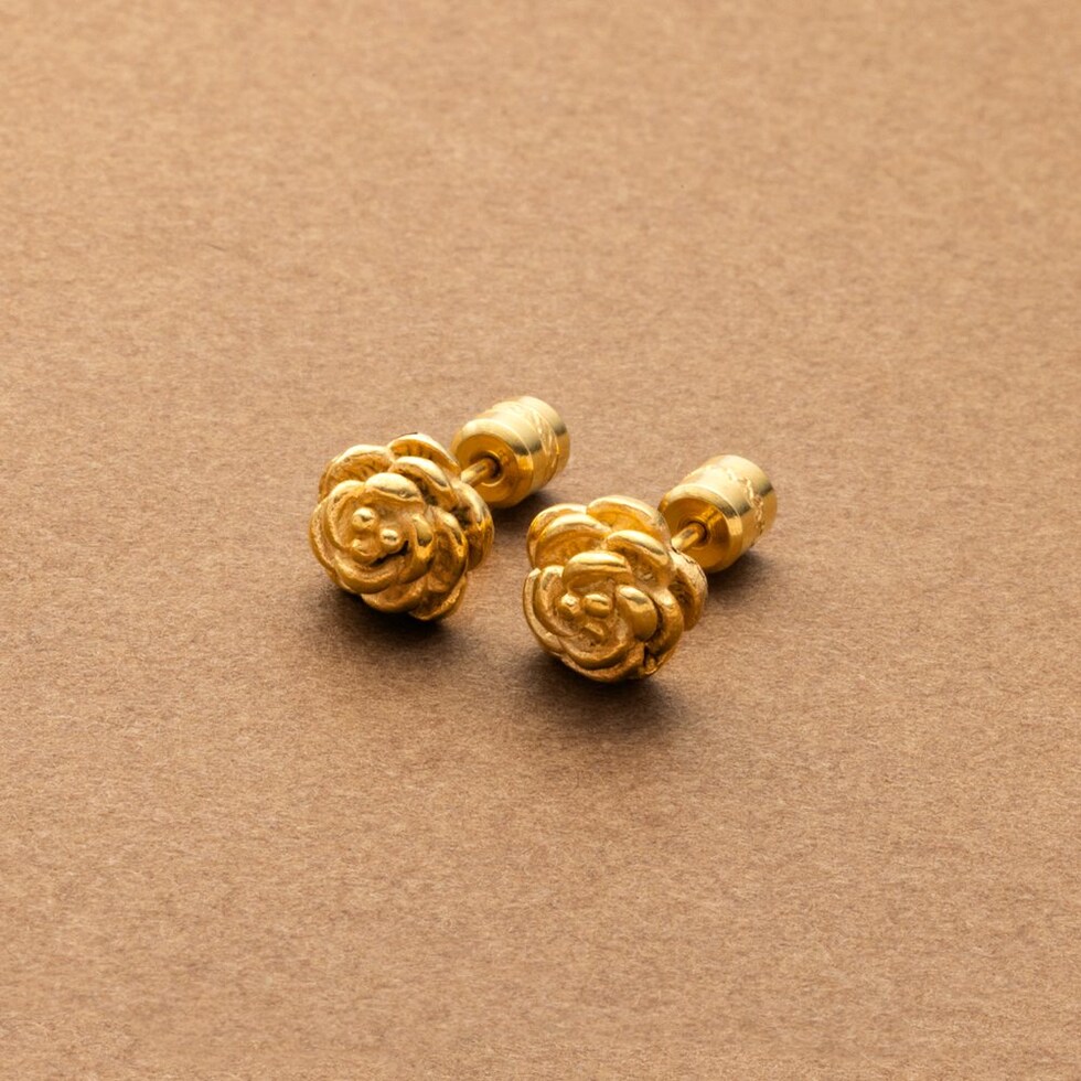 ピアス ステンレス 金属アレルギー サージカルステンレス レディース つけっぱなし カメリア フラワー 立体感 メタル ビジュー ネジロック式 cream dot ゆうパケット [ゴールド_ピアス]