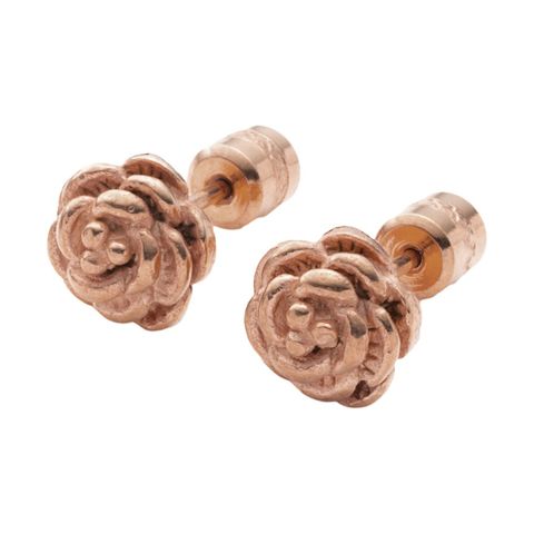 ピアス ステンレス 金属アレルギー サージカルステンレス レディース つけっぱなし カメリア フラワー 立体感 メタル ビジュー ネジロック式 cream dot ゆうパケット [ピンクゴールド_ピアス]
