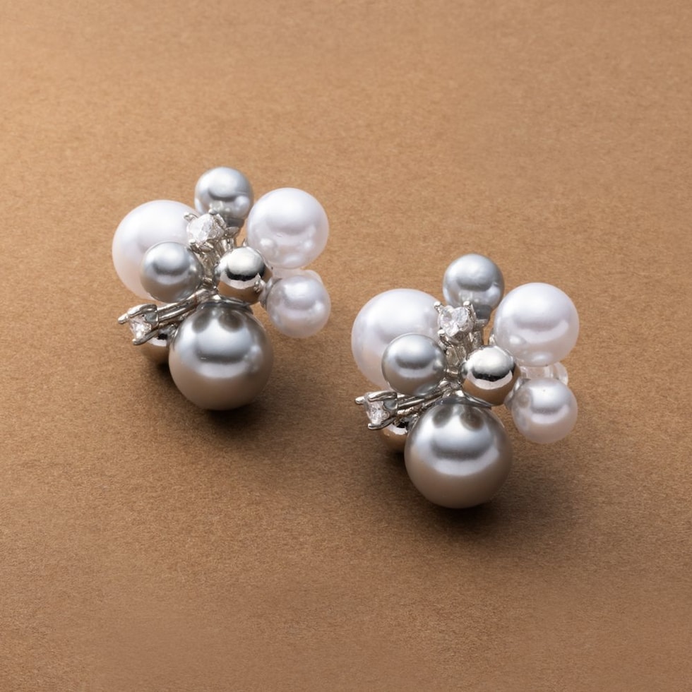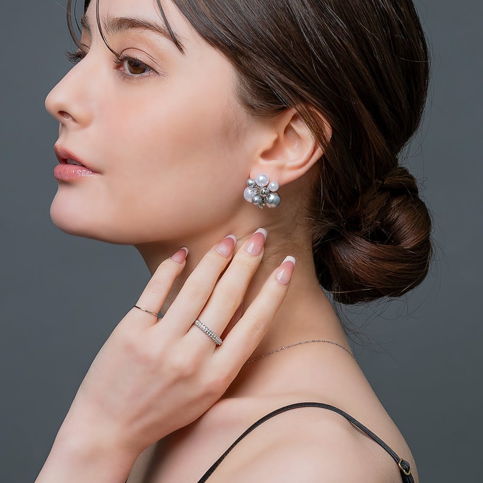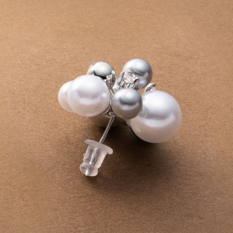 ランダムパールとメタルボールのピアス。存在感を放つ豪華デコラティブなデザイン。上品な煌めきが華やぎを添えてくれる一品です。お出かけはもちろんパーティーなど様々なオケージョンで活躍してくれそう。