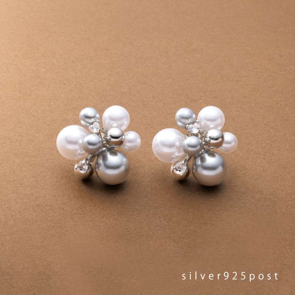 ピアス レディース ポスト SV925ポスト パール メタルボール ビジュー スタッド シリコンキャッチ cream dot ゆうパケット [シルバー_ピアス]