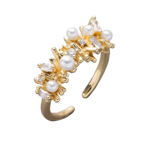 リング 指輪 レディース パヴェ ビジュー パール オープンリング スクエアメタル 立体感 cream dot ゆうパケット [ゴールド_15号]