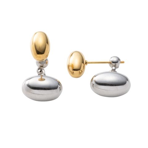 ぷっくりとしたフォルムが卵のようなダブルモチーフのバックキャッチピアス。立体的なフォルムがどの角度から見ても抜かりない可愛さを演出◎耳裏でちょい揺れするモチーフと、バイカラーで個性的なデザインが大人っぽい品格を演出。錆びにくく傷に強いステンレス製で、長時間の着用も安心の低アレルギー素材です。