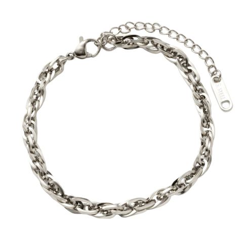 スクリューチェーンのステンレス製ブレスレット。複雑に絡まるスクリューチェーンの繊細リュクスな輝きが、手元から余裕のあるオトナの女性を演出してくれます◎大人スタイルのアップグレードに一役買いそう。