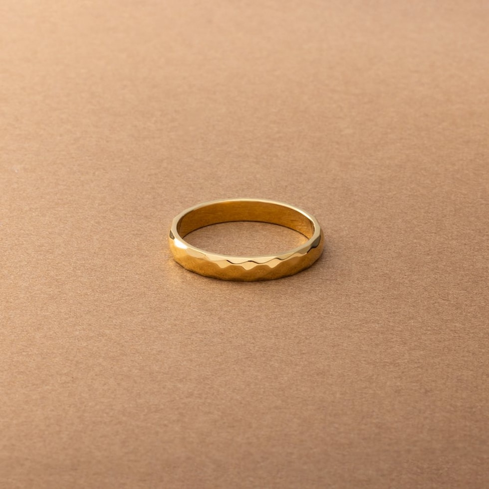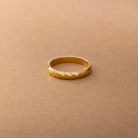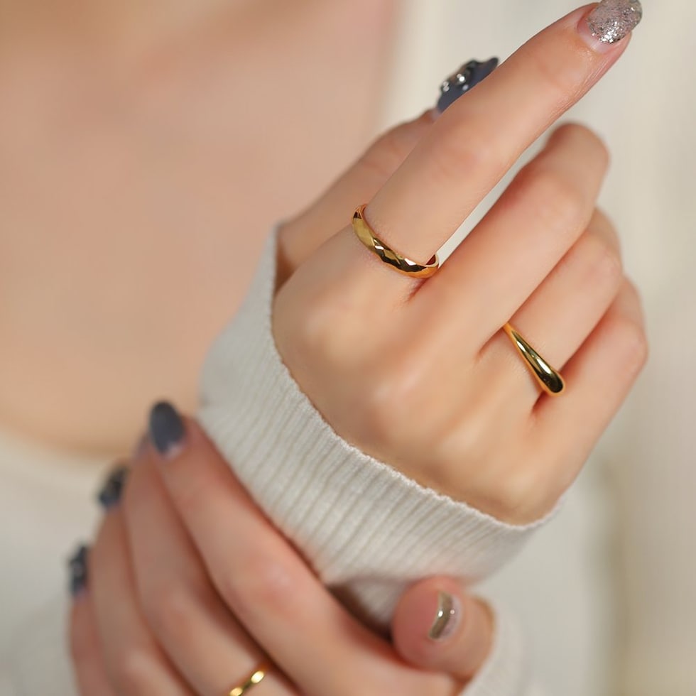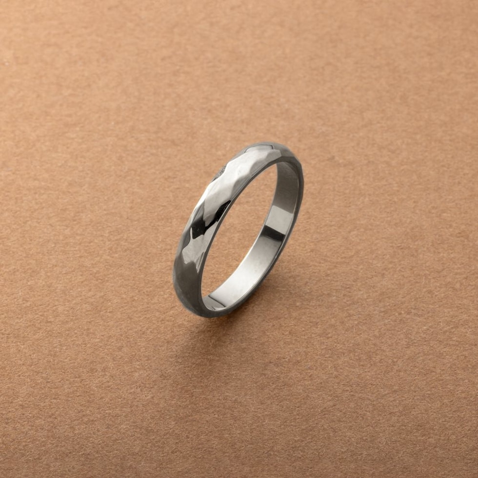 様々な角度からの光を反射して煌めく、多角カットデザインリング。シンプルながらも華やかな輝きが、手元のアクセントに◎錆びにくく傷に強いステンレス製で、デイリーに活躍してくれます。長時間の着用も安心の低アレルギー素材です。