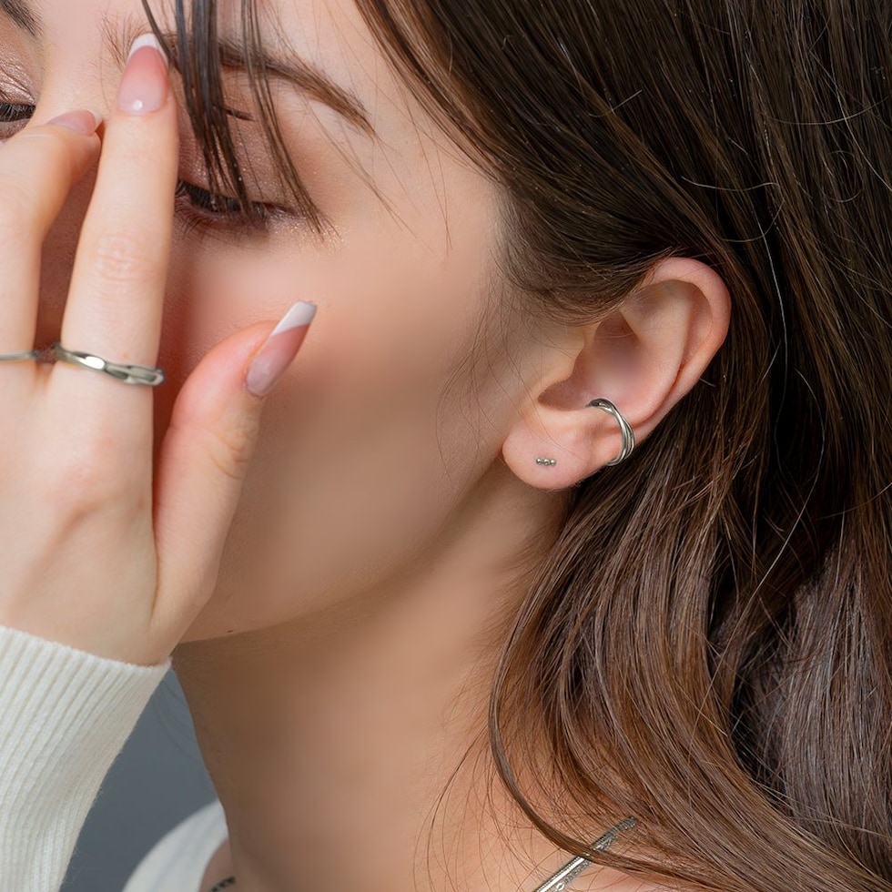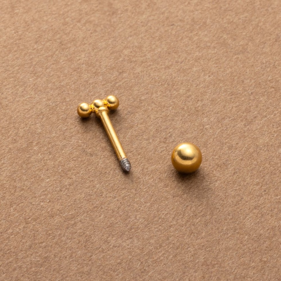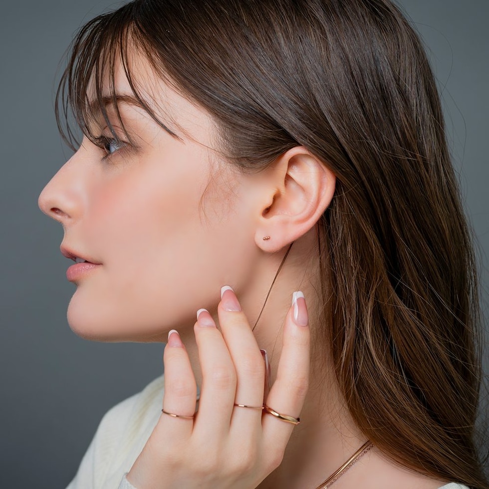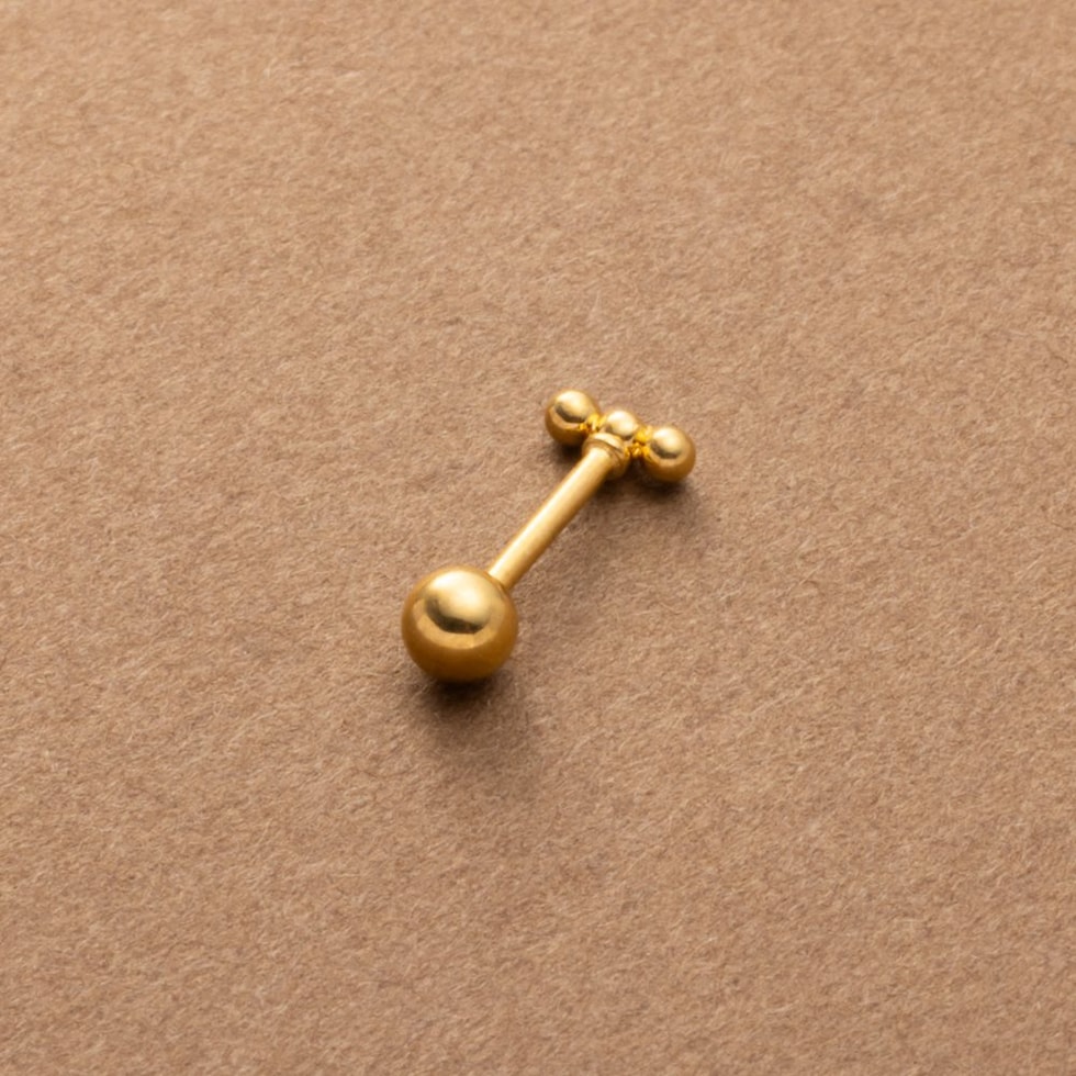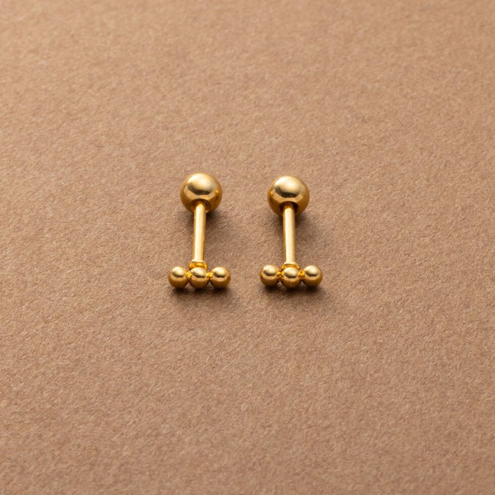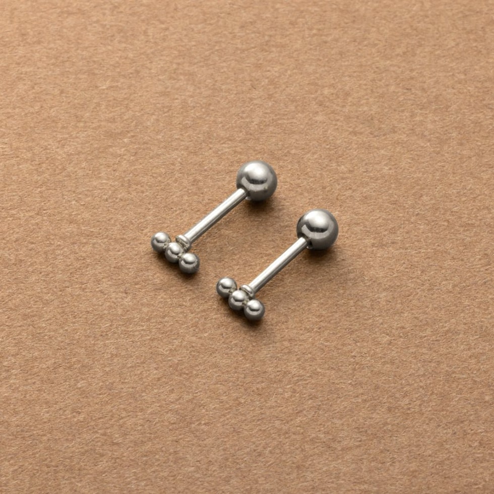メタルボールを3つ連ねたネジロック式のマイクロピアス。ネジのようにくるくると回して留めるネジロック式キャッチで落ちにくいのが嬉しい◎単品使いはもちろん、お手持ちのピアスやカフと重ね着けを楽しめます。錆びにくく傷に強いステンレス製で、長時間の着用も安心の低アレルギー素材です。