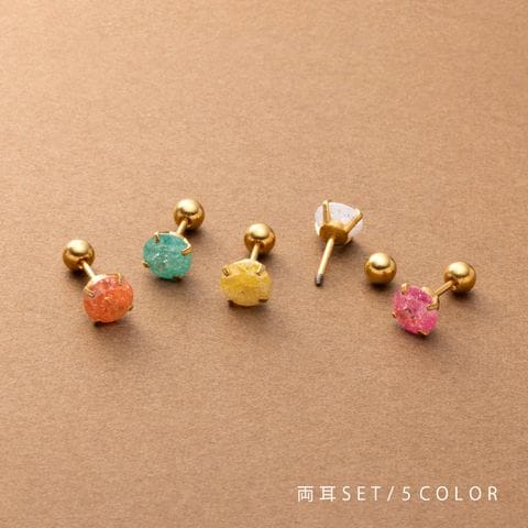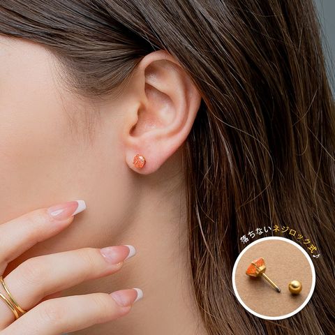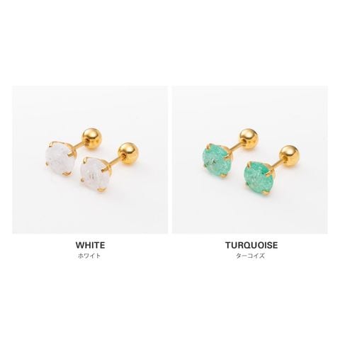 鮮やかなカラーストーンが煌めくネジロック式スタッドピアス。気分まで上がりそうな色合いと程よいサイズ感が今からの季節にピッタリなひと品◎メタルボールのキャッチで目立ちにくくスマートなのも嬉しいpoint♪錆びにくく傷に強いステンレス製です。