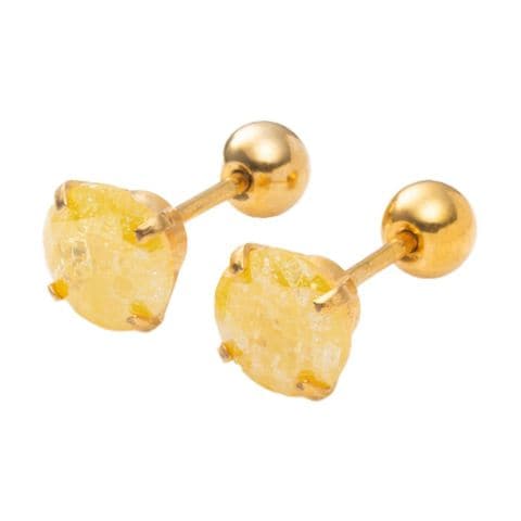 ピアス ステンレス 金属アレルギー サージカルステンレス レディース つけっぱなし ネジロック式 ボールキャッチ カラーストーン ビジュー 一粒 cream dot ゆうパケット [ゴールド×イエロー_ピアス]