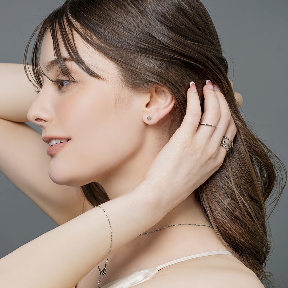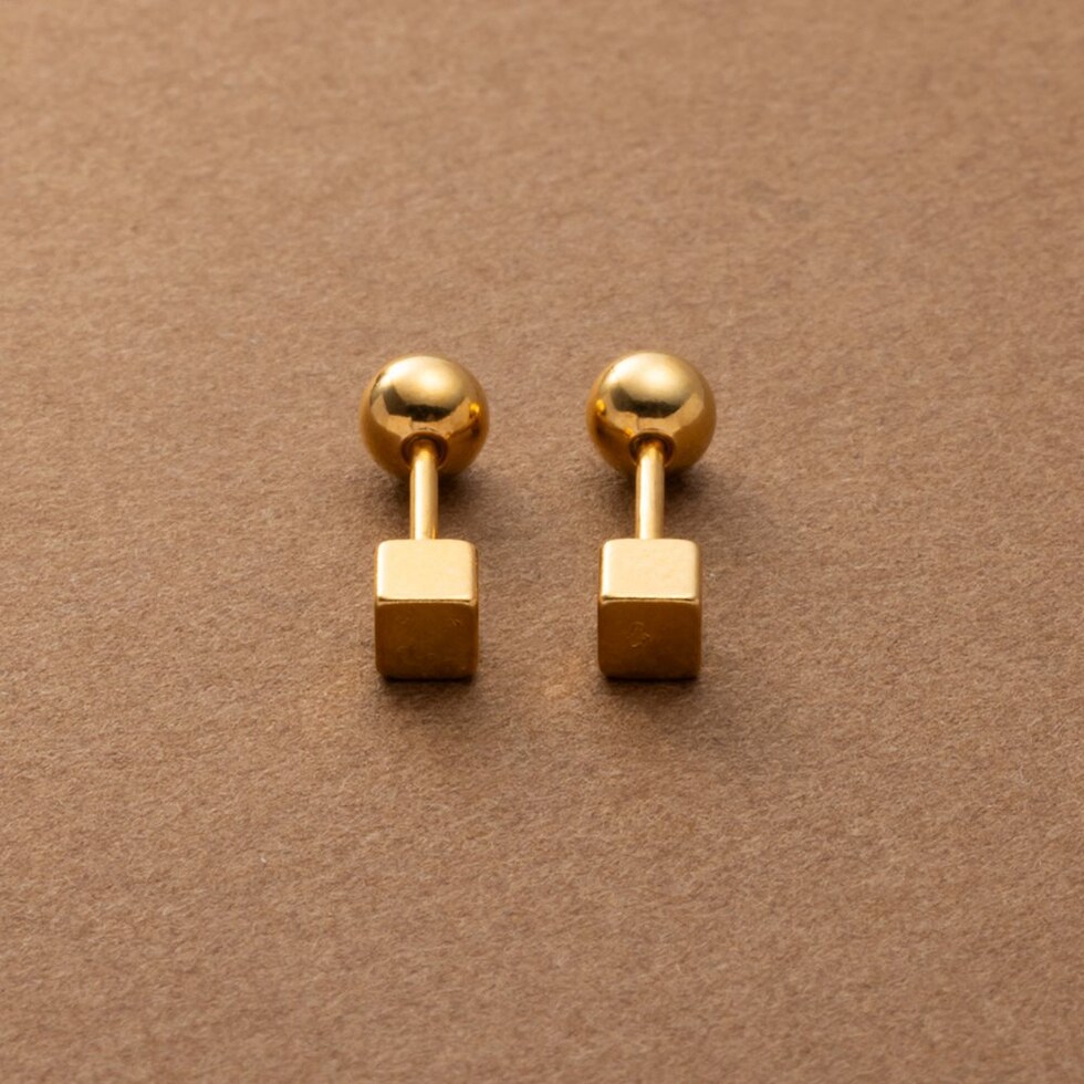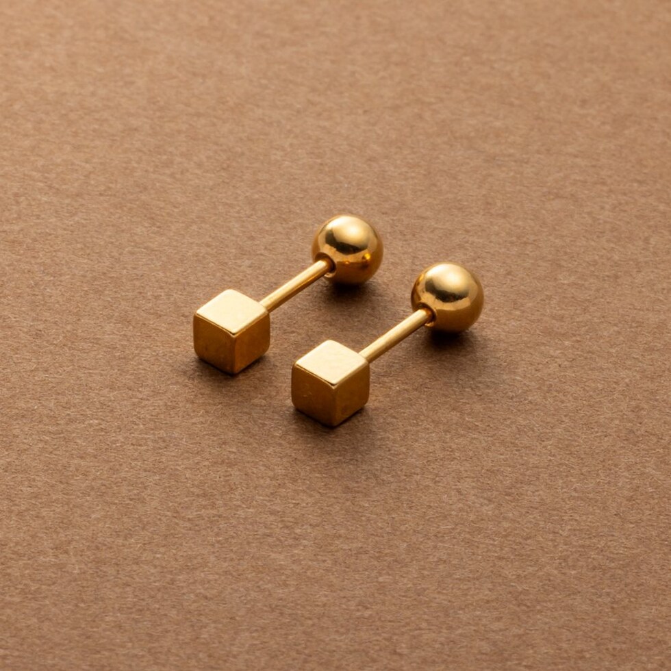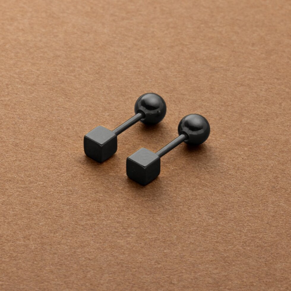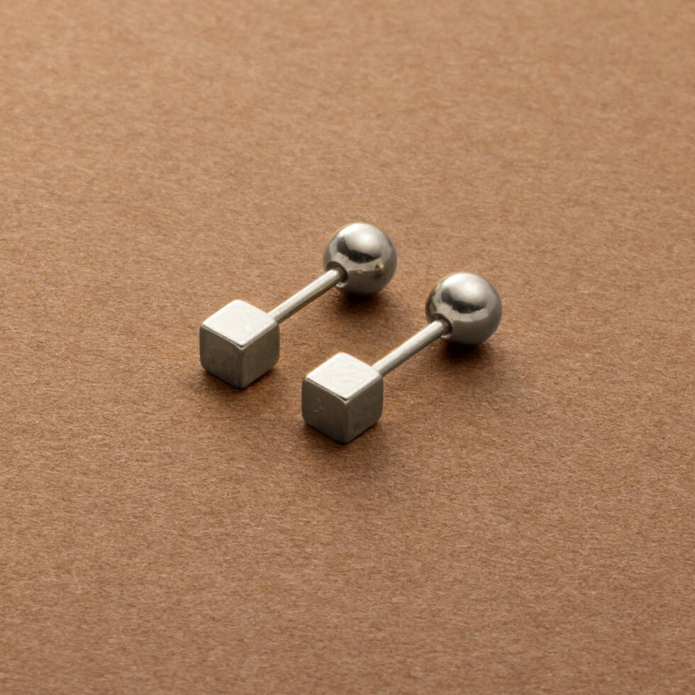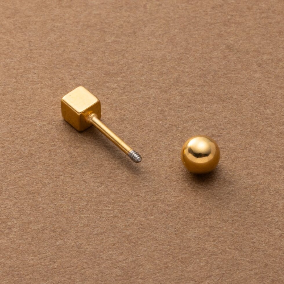 メタルキューブのステンレス製ネジロック式ピアス。ミニマムキューブにメタルボールのネジロック式キャッチを合わせた見た目すっきりなデザインでスタイリッシュな雰囲気に。キューブとボールどちらもメインに使えるリバーシブルなのも嬉しい◎