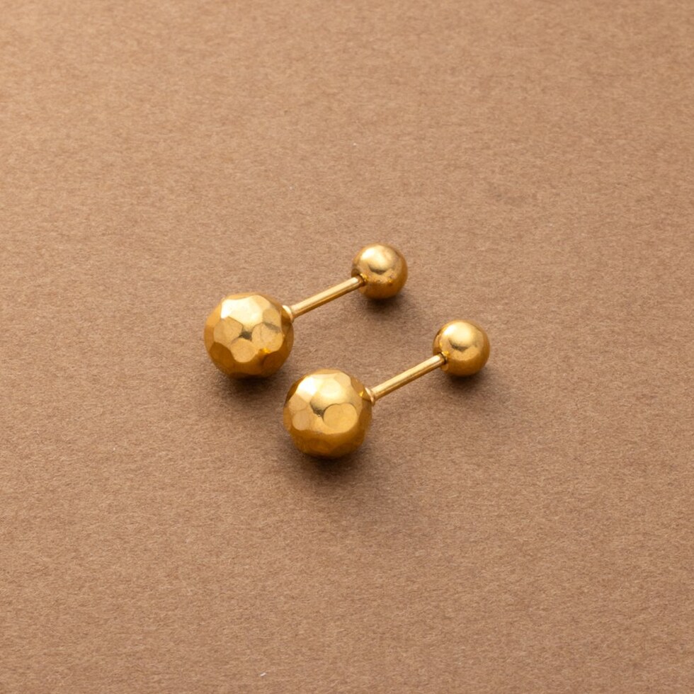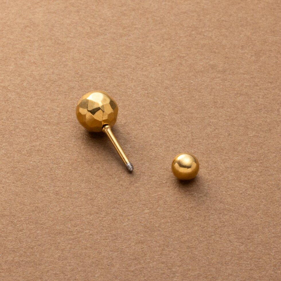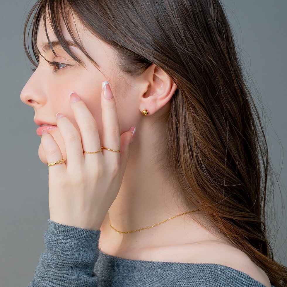 多面カットを施したメタルボールのネジロック式スタッドピアス。表情豊かな艶めきとシンプルなデザインが普段使いしやすいひと品◎メタルボールのキャッチで目立ちにくくスマートなのも嬉しいpoint♪錆びにくく傷に強いステンレス製です。