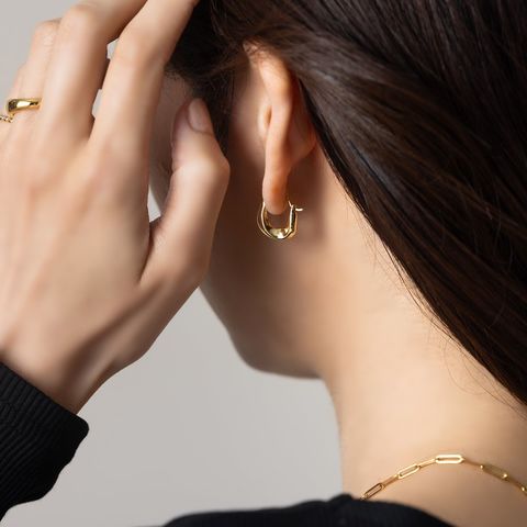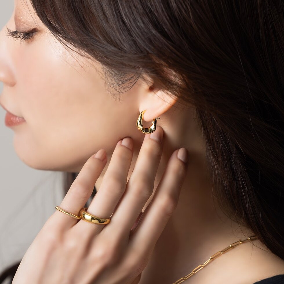 ニュアンス感漂う歪ラインメタルのキャッチレスピアス。ひねりを効かせた存在感ある艶メタルが、モダンな大人の印象に◎程よいサイジングでカジュアルからキレイめまで幅広く活躍してくれます。