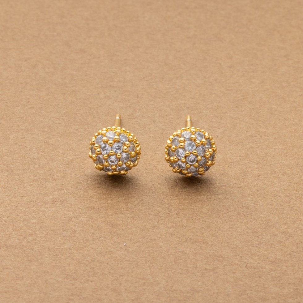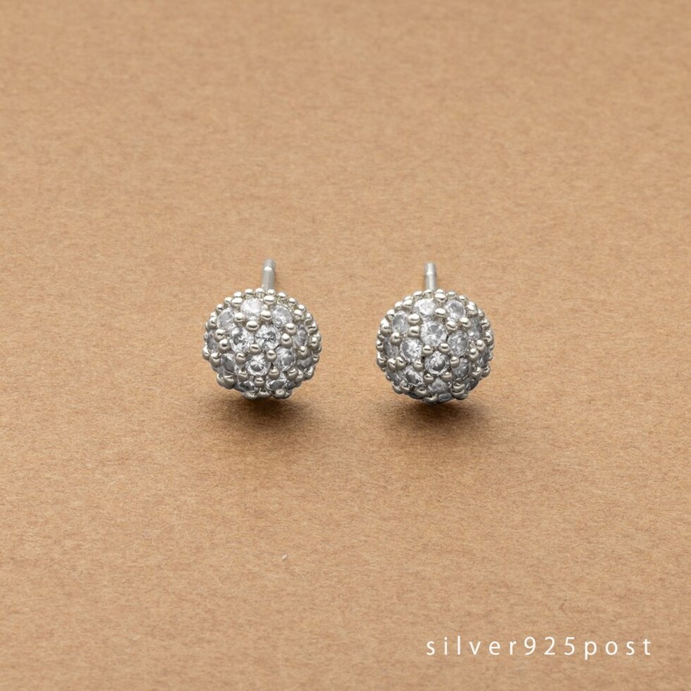丸みのあるドーム型にビジューを敷き詰めたパヴェスタッドピアス。角度によって輝きを増すビジューがお顔周りを華やかに彩ります。お出かけはもちろん、デイリーコーデのクラスアップアイテムとしても◎低アレルギーのsilver925ポストを使用しているので、長時間の着用も安心です