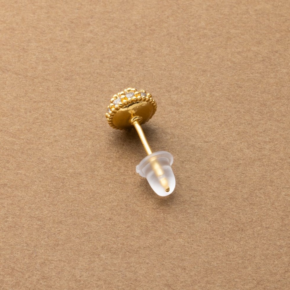 ピアス レディース ポスト パヴェ ビジュー ドーム型 シリコンキャッチ スタッド cream dot ゆうパケット [ゴールド_ピアス]