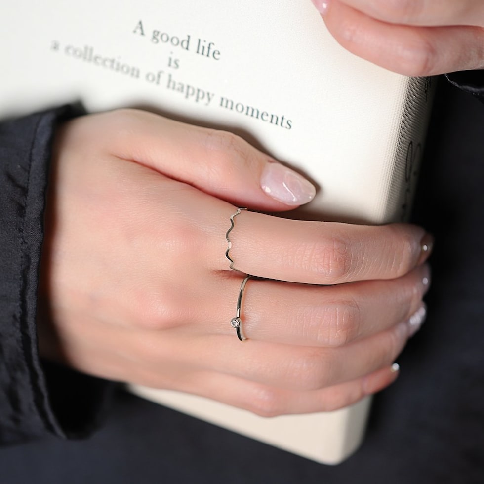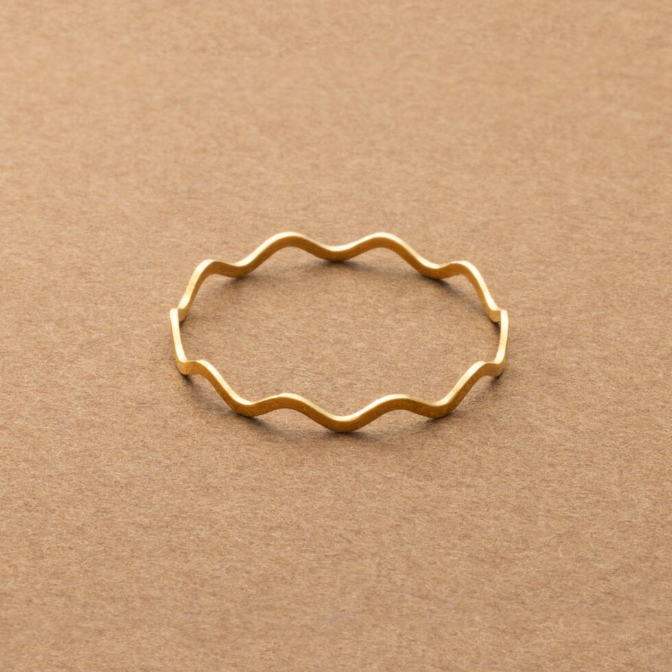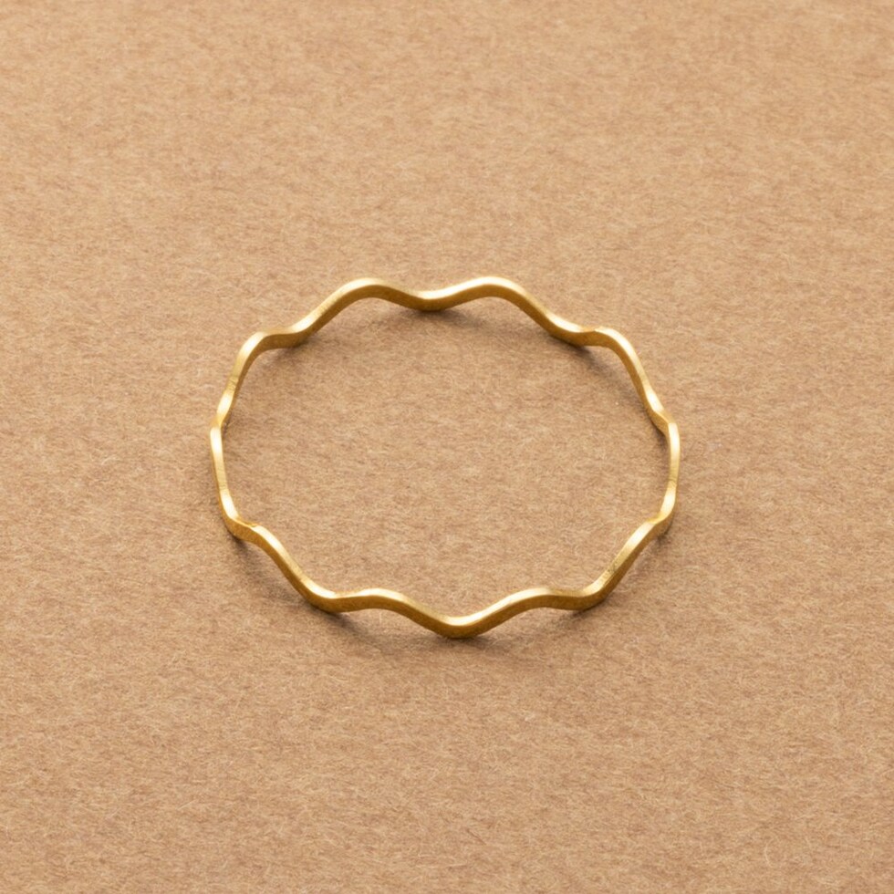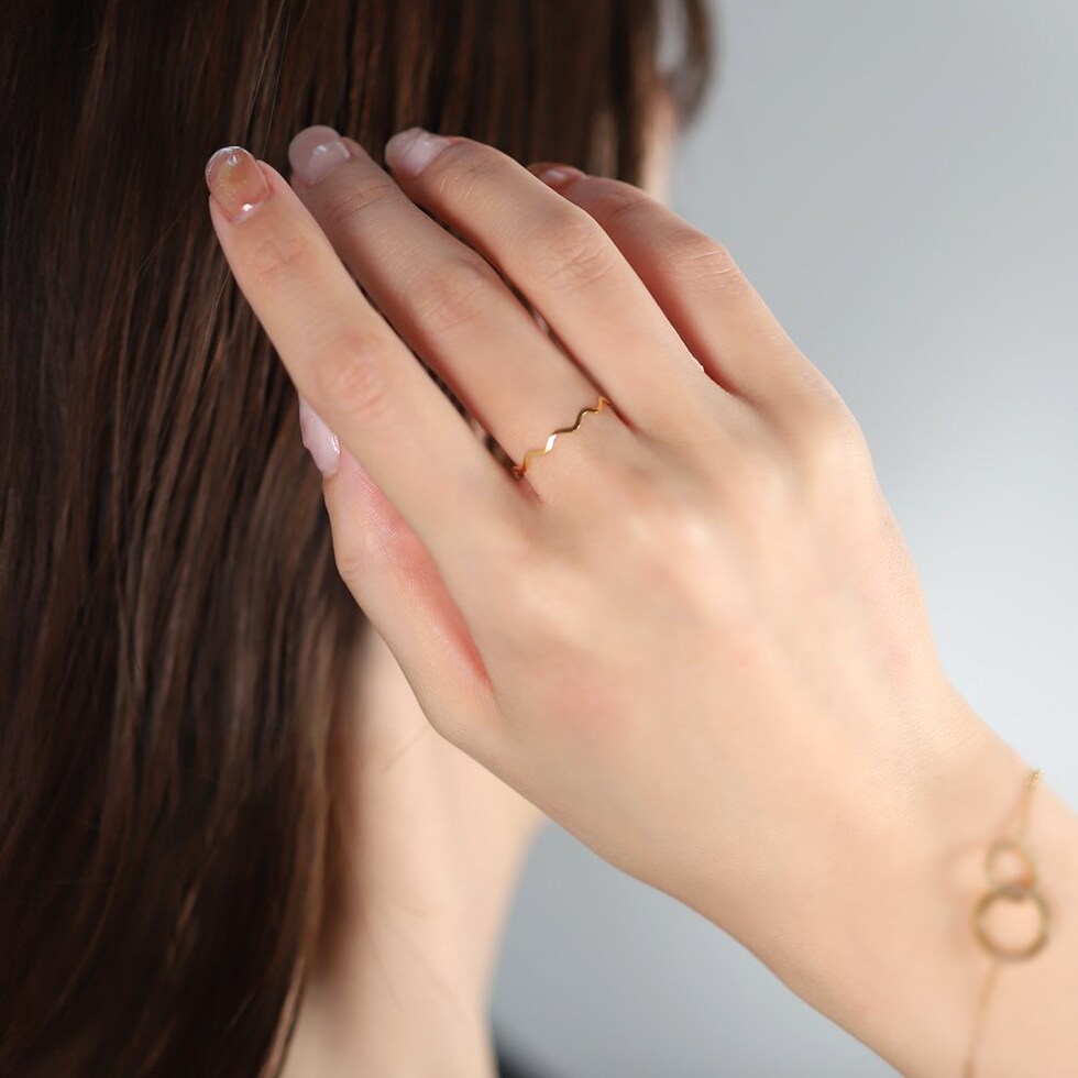 肌にスッと馴染むステンレス製ウェーブリング。緩やかに波打つ華奢なシルエットと、さりげなく艶めくデザインが手元にこなれたアクセントを添えてくれる。錆びにくく傷に強いステンレス製で、他のリングとの重ね付けにもオススメです。