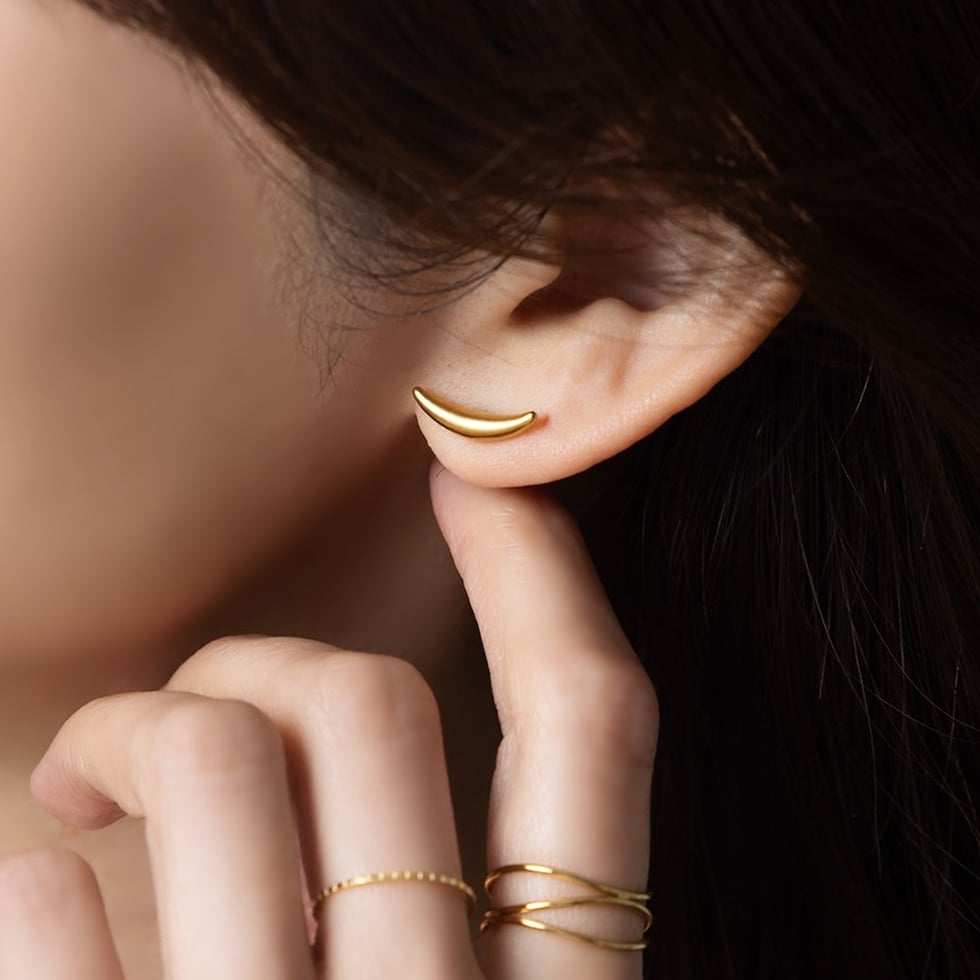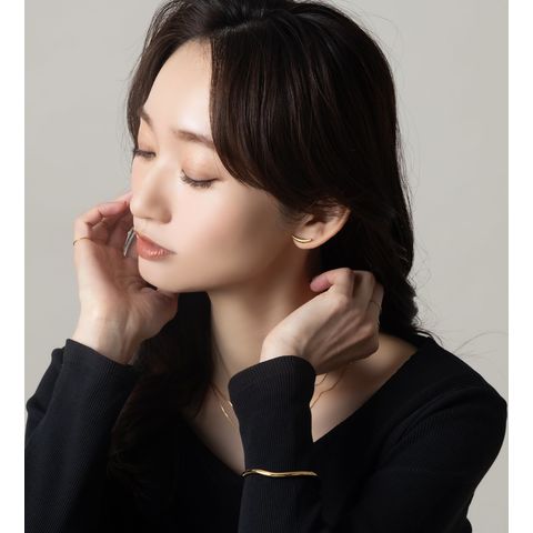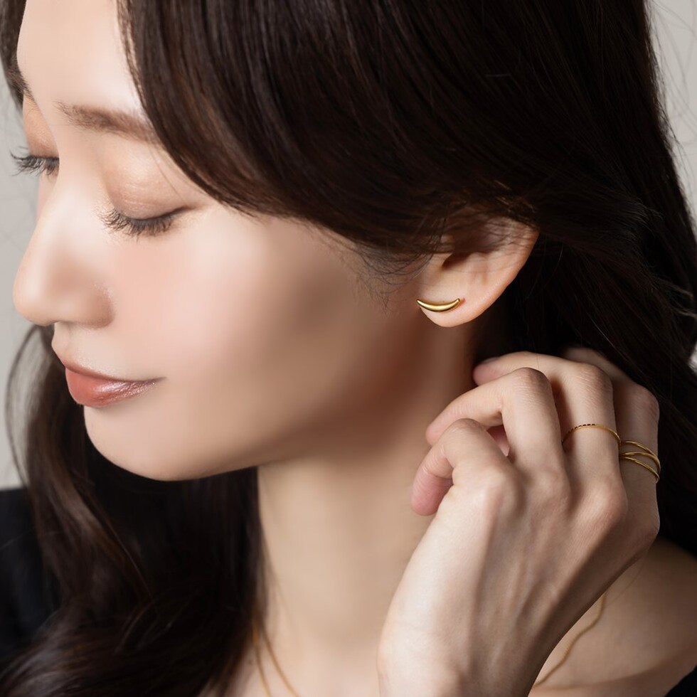 ぷっくり艶めくステンレス製スマイルピアス。ぷっくりフォルムの三日月型メタルバーがなんだかスマイルのようにも見えちゃう洗練デザイン。シンプルで大人っぽく身に着けられるから、さりげなく気分上がりそう◎