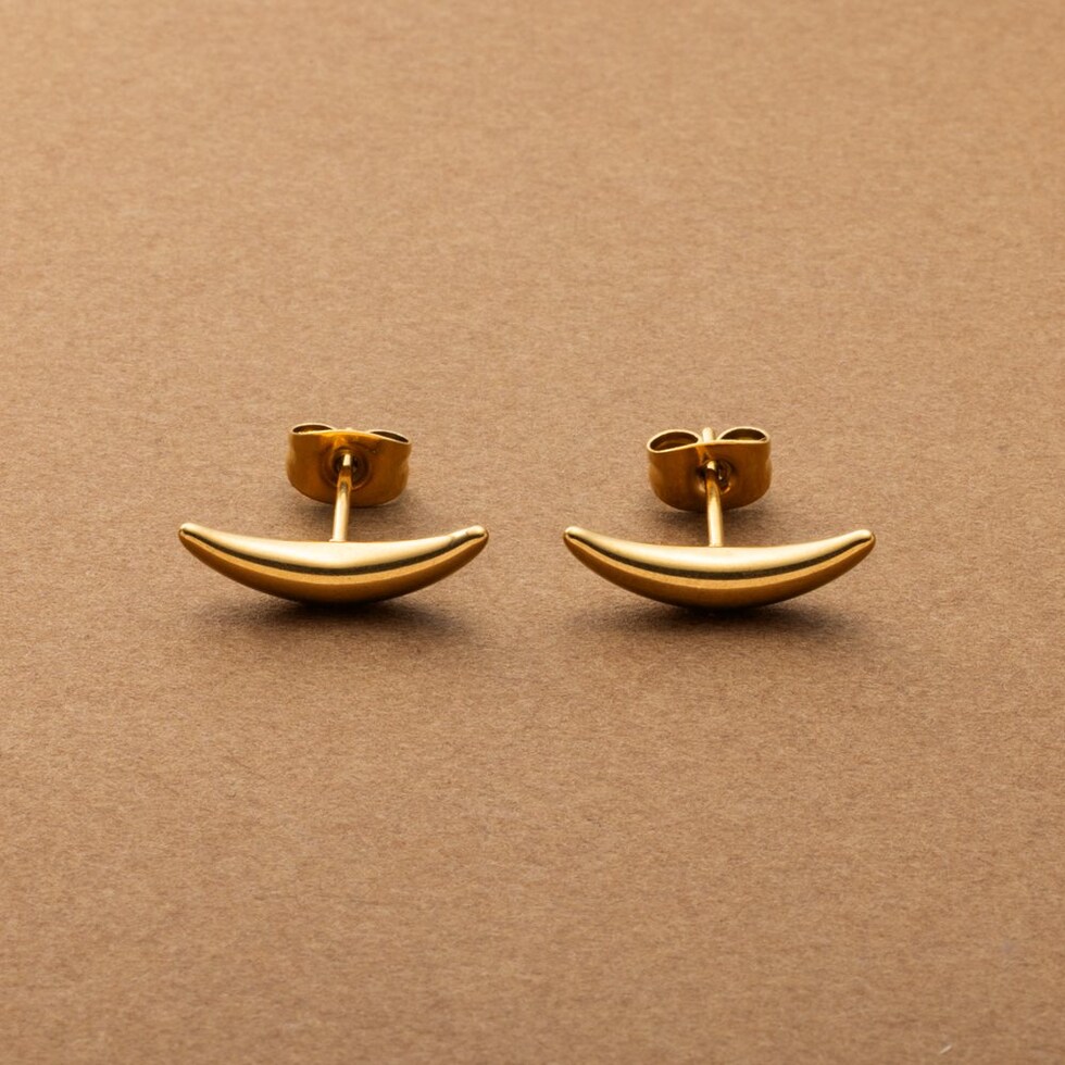 ピアス ステンレス 金属アレルギー サージカルステンレス レディース つけっぱなし ぷっくり スマイル メタルバー 三日月型 スタッド cream dot ゆうパケット [ゴールド_ピアス]