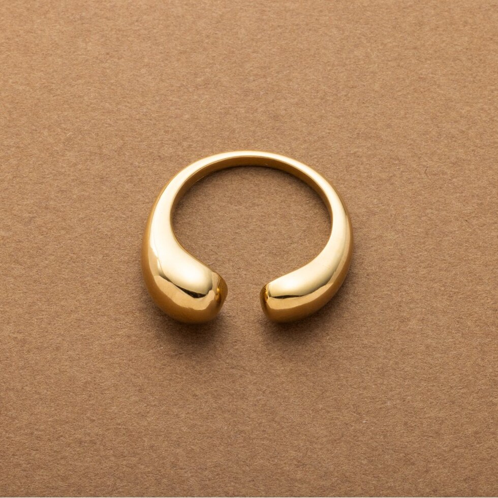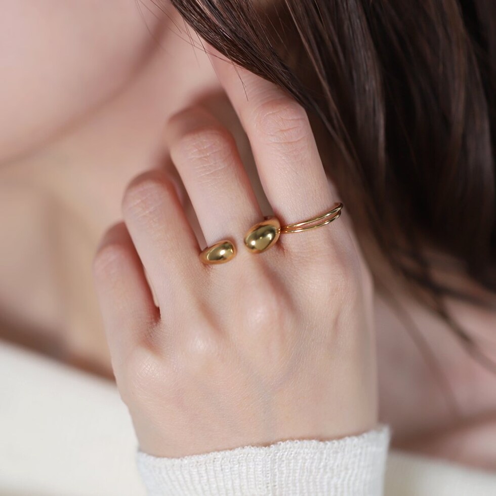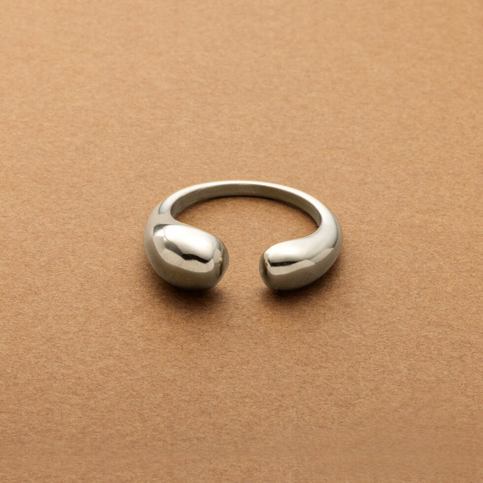 アシンメトリーなぷっくりダブルドロップのステンレス製イヤーカフ。絶妙にサイズ差を加えたぷっくりドロップがモダンで今っぽい。オープンリングとしても使えちゃうからヘビーローテーション間違いナシ。