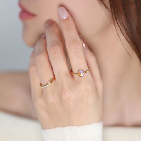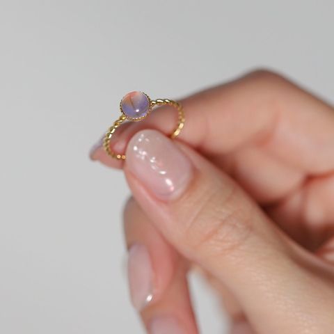 オーロラカラーのストーンが印象的なツイストリング。角度によって変化する色合いが、指先に彩りを添え華やかに演出します。錆びにくく傷に強いステンレス製で、デイリー使いにピッタリなひと品◎