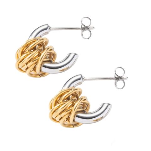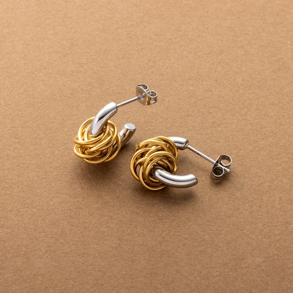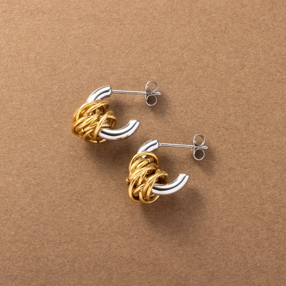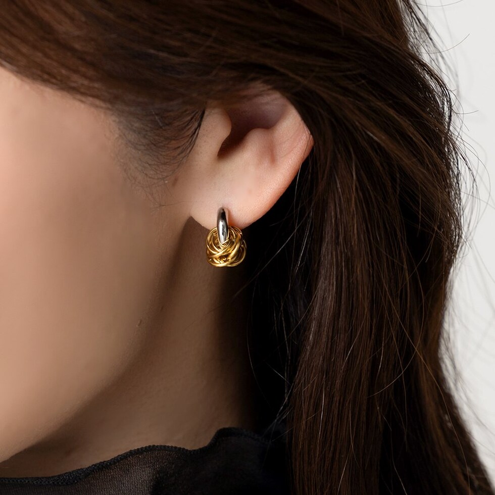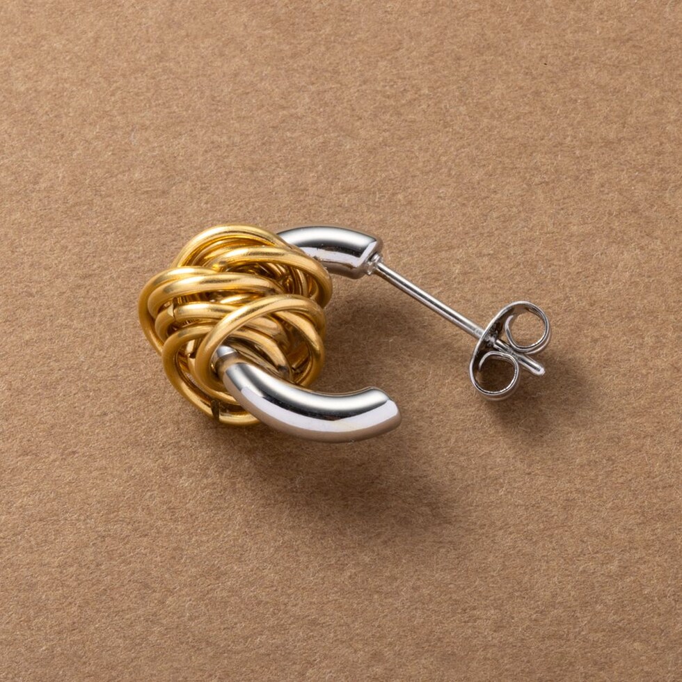ワイヤーを巻き付けたような多重リングがアクセントのフープピアス。MIXカラーが今っぽさを引き立たせてくれるひと品。合わせやすいサイズ感と長時間の着用にも安心なステンレス製で、普段使いにピッタリなアイテムです。