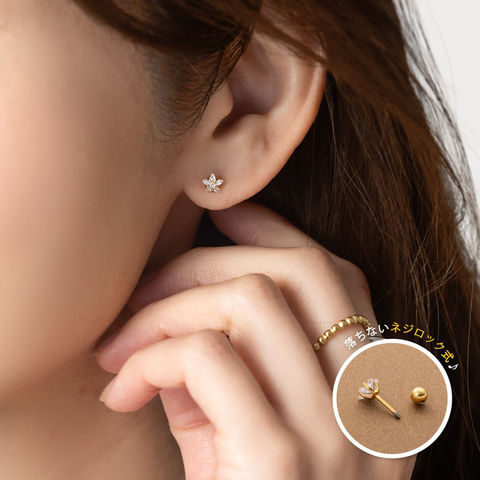 ネジのようにしっかりと留められるから落ちてしまう心配もナシ。メタルボールのネジロック式仕様で目立ちにくくスマートなのも嬉しいpoint◎