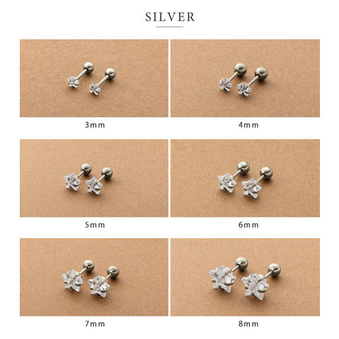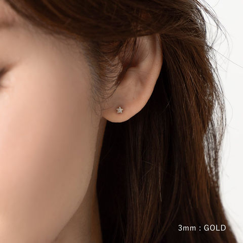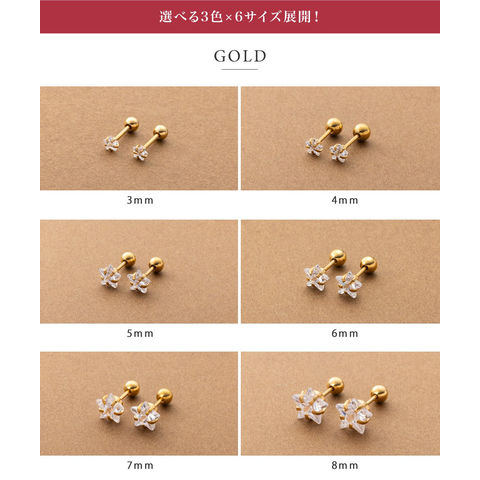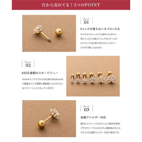 3mm~8mmのスタービジューが選べるネジロック式スタッドピアス。小粒なメタルボールのキャッチでスタイリッシュなひと品。低アレルギー素材のステンレス製で、デイリーに活躍してくれるアイテムです。