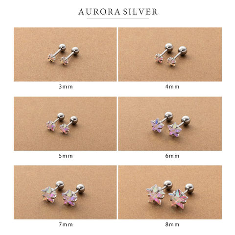 ピアス ステンレス 金属アレルギー サージカルステンレス レディース つけっぱなし ネジロック式 ビジュー 星 スター 6サイズ 両耳用 オーロラ cream dot ゆうパケット [シルバー_3mm]