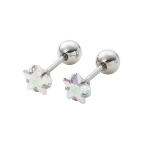 ピアス ステンレス 金属アレルギー サージカルステンレス レディース つけっぱなし ネジロック式 ビジュー 星 スター 6サイズ 両耳用 オーロラ cream dot ゆうパケット [オーロラ×シルバー_5mm]
