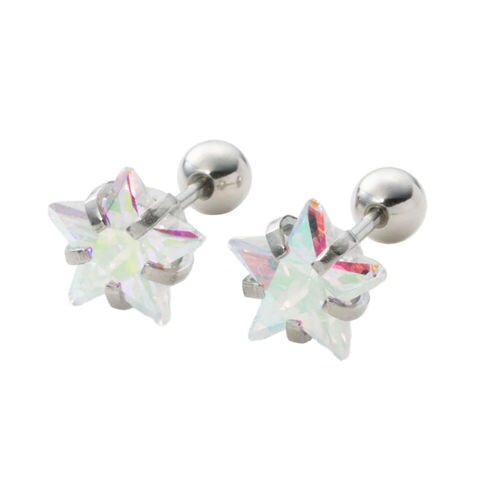 ピアス ステンレス 金属アレルギー サージカルステンレス レディース つけっぱなし ネジロック式 ビジュー 星 スター 6サイズ 両耳用 オーロラ cream dot ゆうパケット [オーロラ×シルバー_8mm]