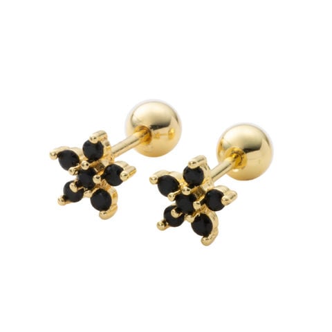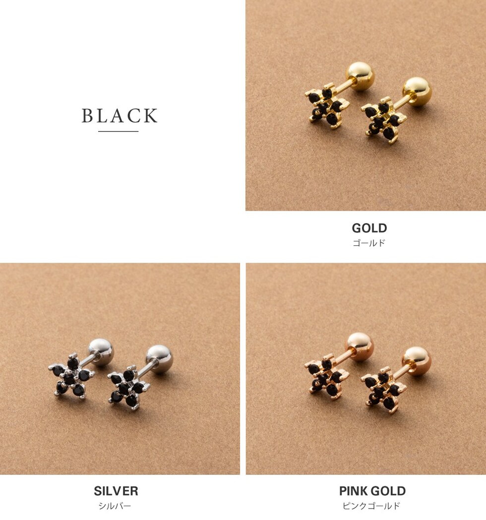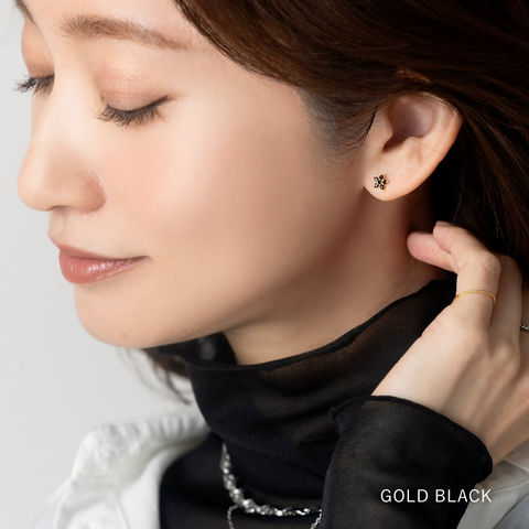 ピアス ステンレス 金属アレルギー サージカルステンレス レディース つけっぱなし ネジロック式 ミニ フラワー ビジュー 両耳用 cream dot ゆうパケット [ゴールド×ブラック_ピアス]