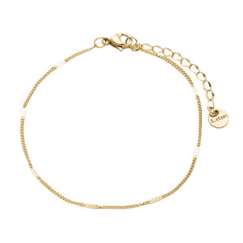 華奢チェーンが大人の抜け感を演出するブレスレット。ステーションデザインで動く度に手元で繊細に煌めきます。サラッと1本で着用しても、重ね着けしても楽しめるアイテム。シンプルで品の良いデザインだからリングとも相性◎錆びにくいステンレス製でデイリーに活躍しそう。