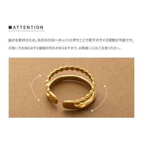 メタルボールとカッティングデザインを2連づけしているようなレイヤード風オープンリング。日々のコーデのプラスワンアイテムとして、ワードローブに加えておきたい逸品◎錆びにくく傷に強いステンレス製で、デイリーに活躍してくれます。長時間の着用も安心の低アレルギー素材です。