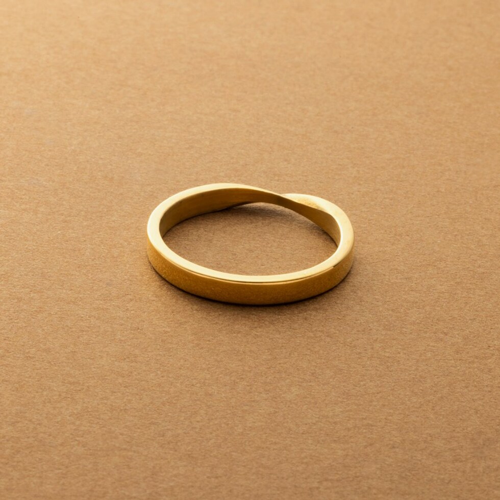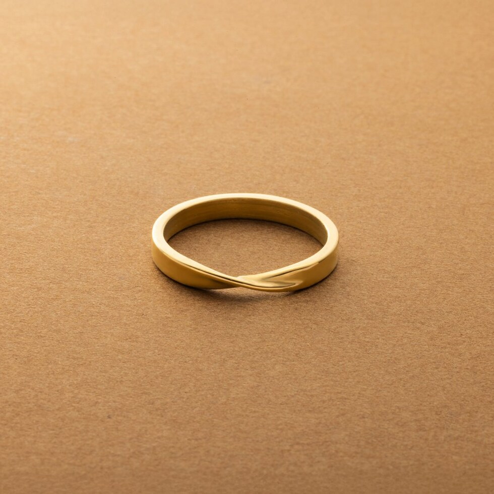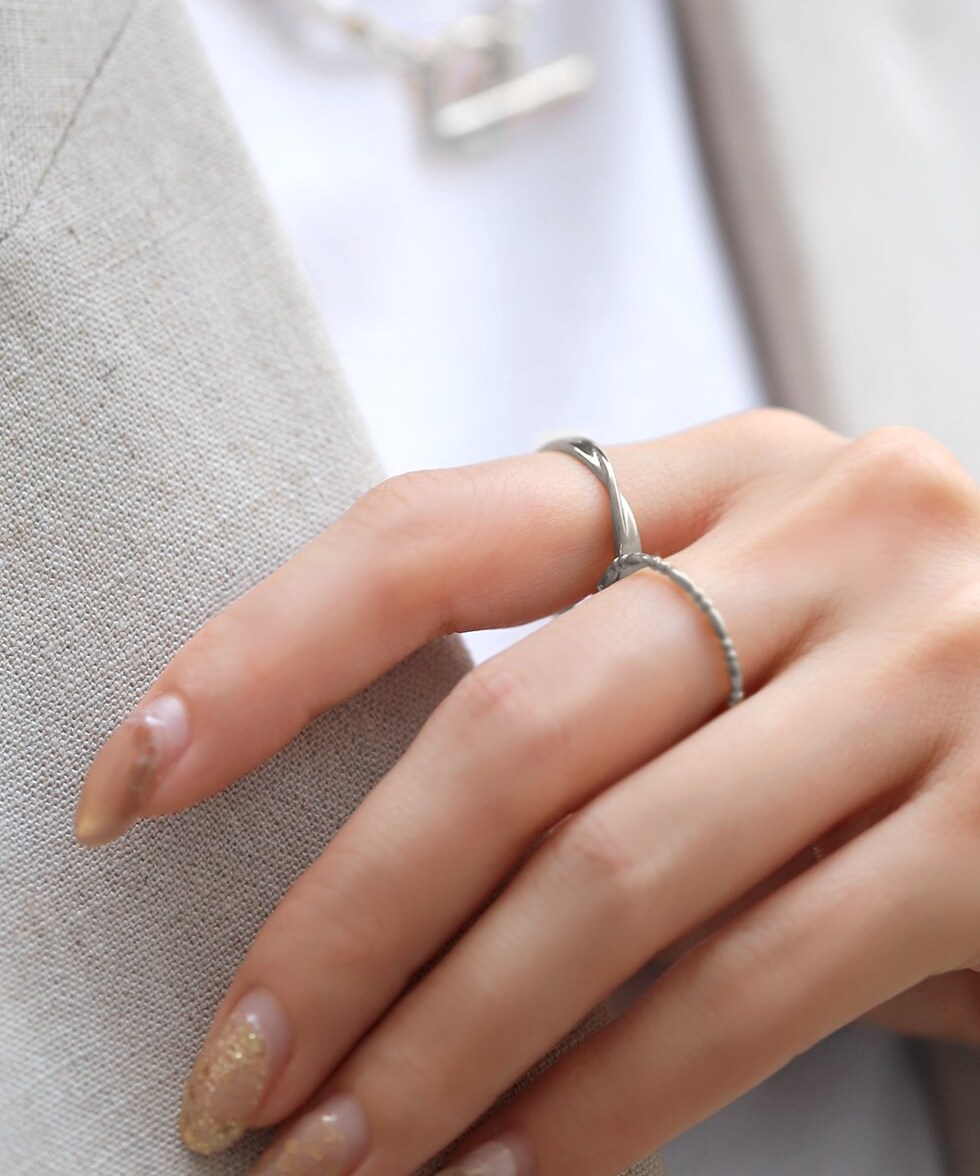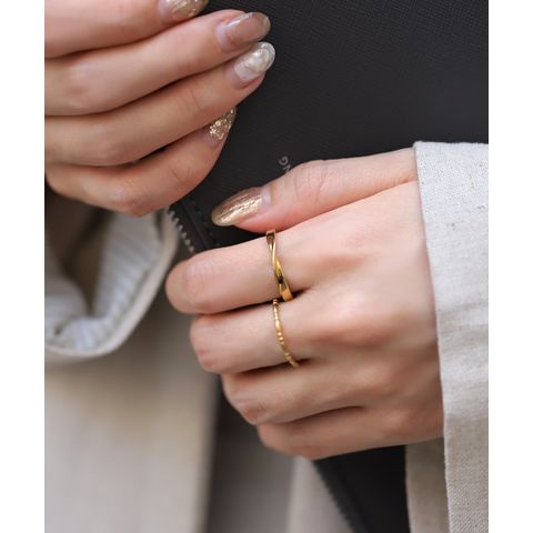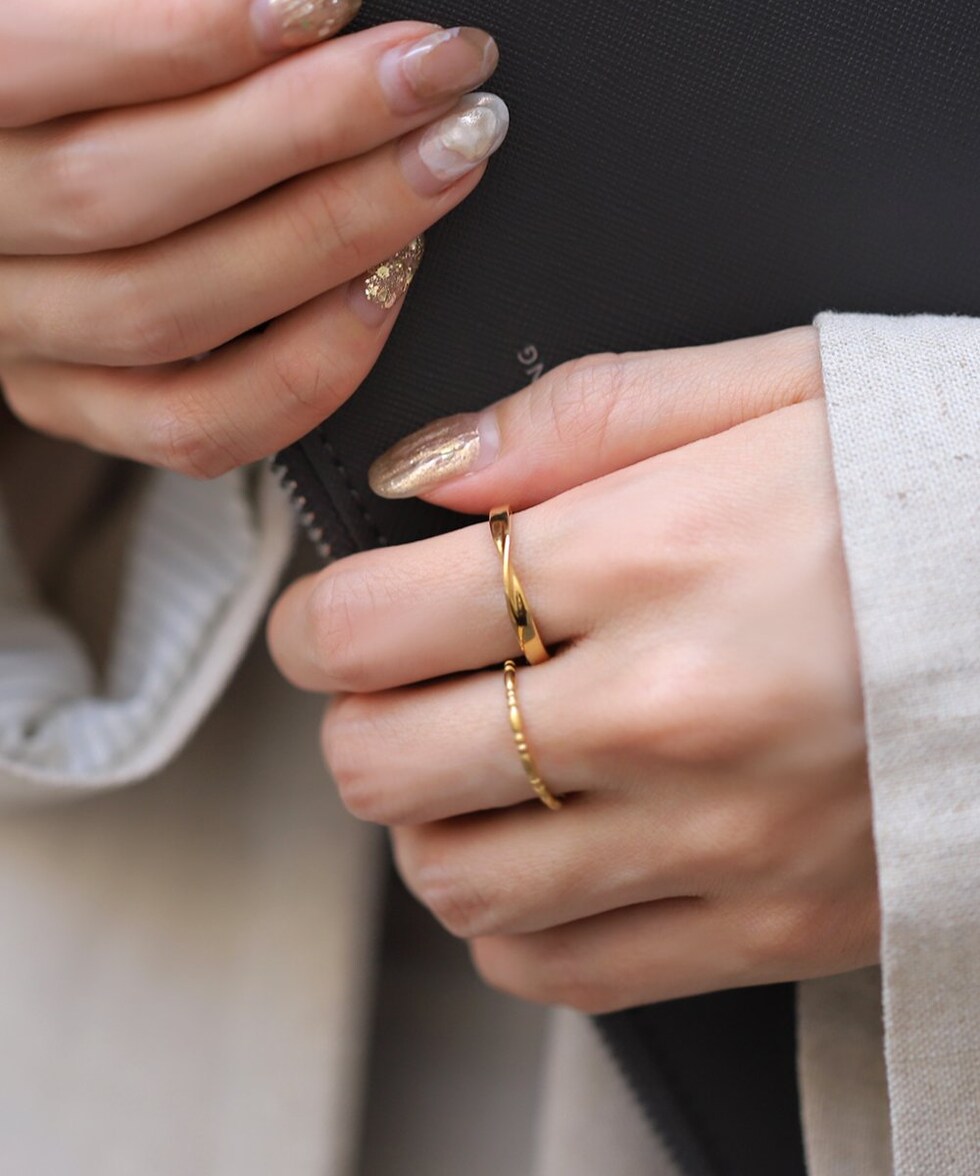 ひねりを効かせたデザインが洗練された印象のリング。ニュアンスたっぷりの緩やかなラインが手元に存在感をプラスします。錆びにくいステンレス製で、他のリングとの重ね付けも楽しめるデイリーにオススメなアイテム。