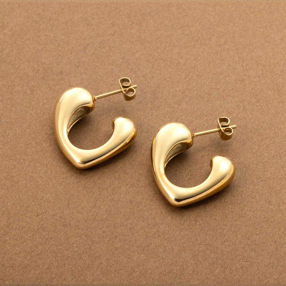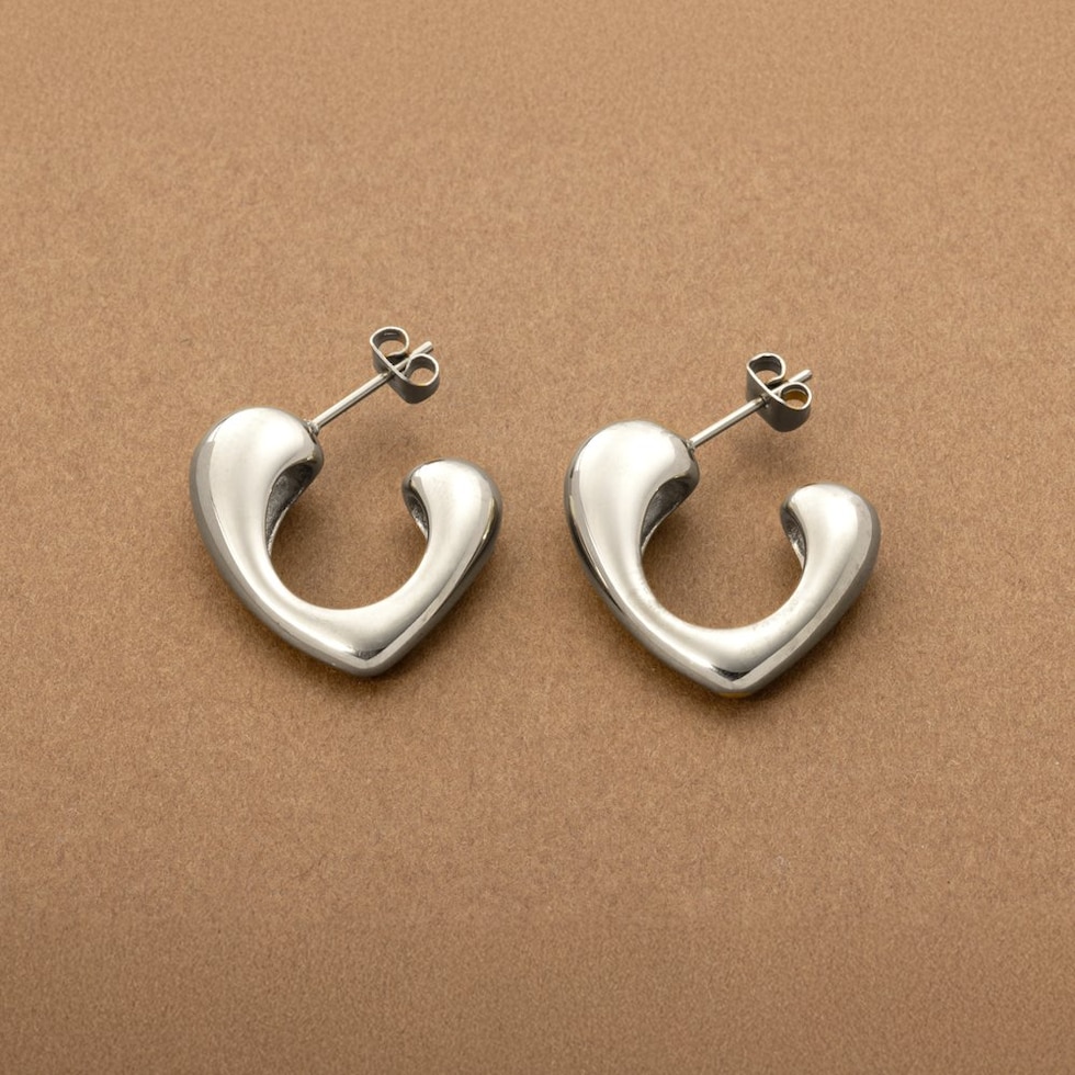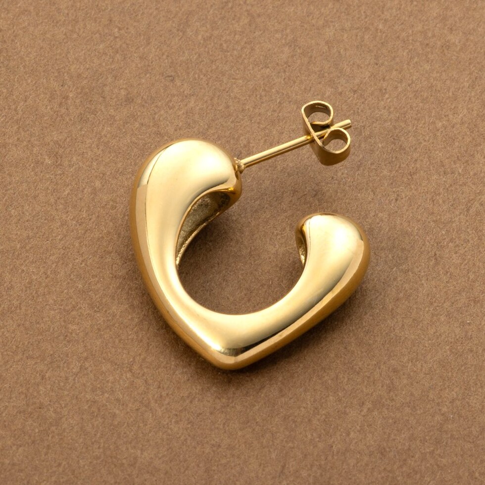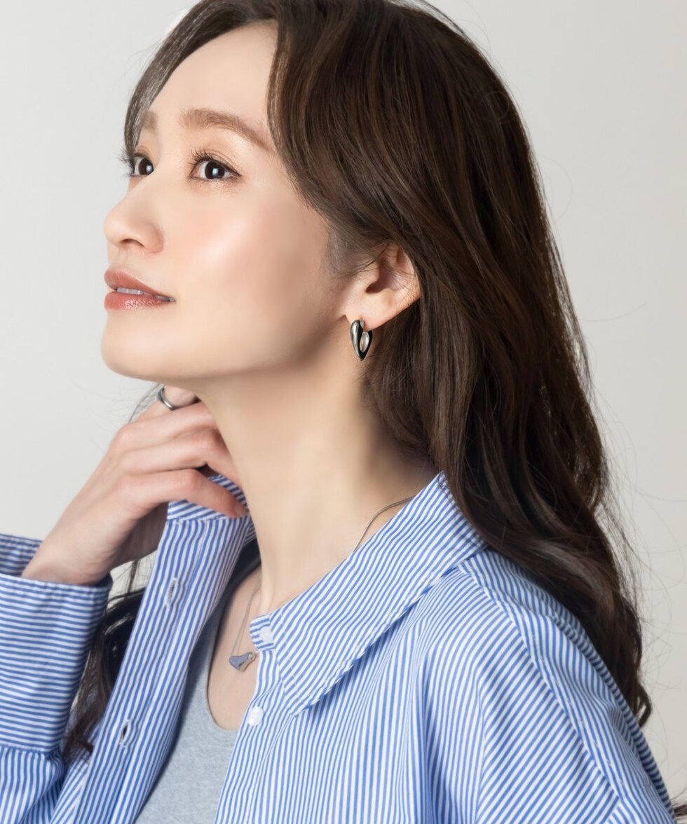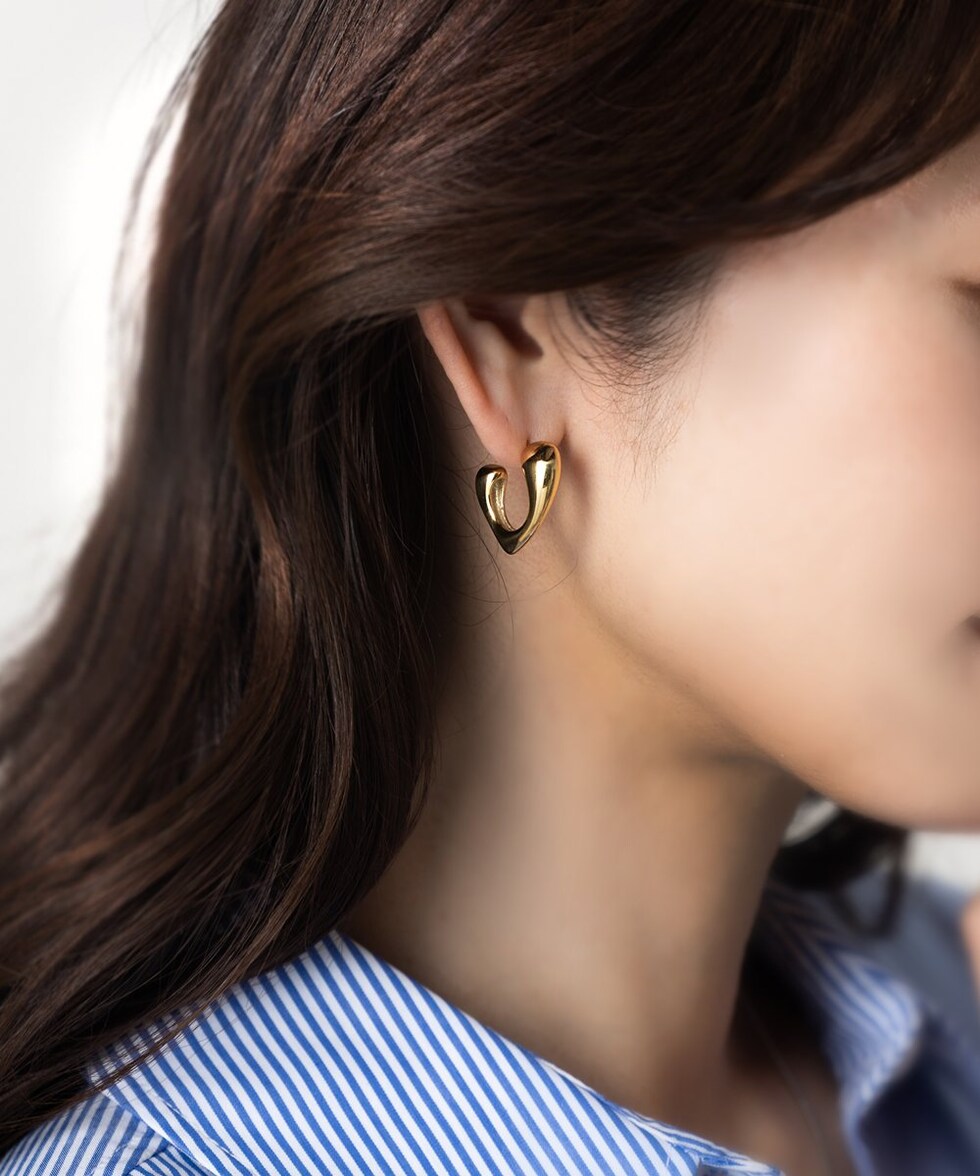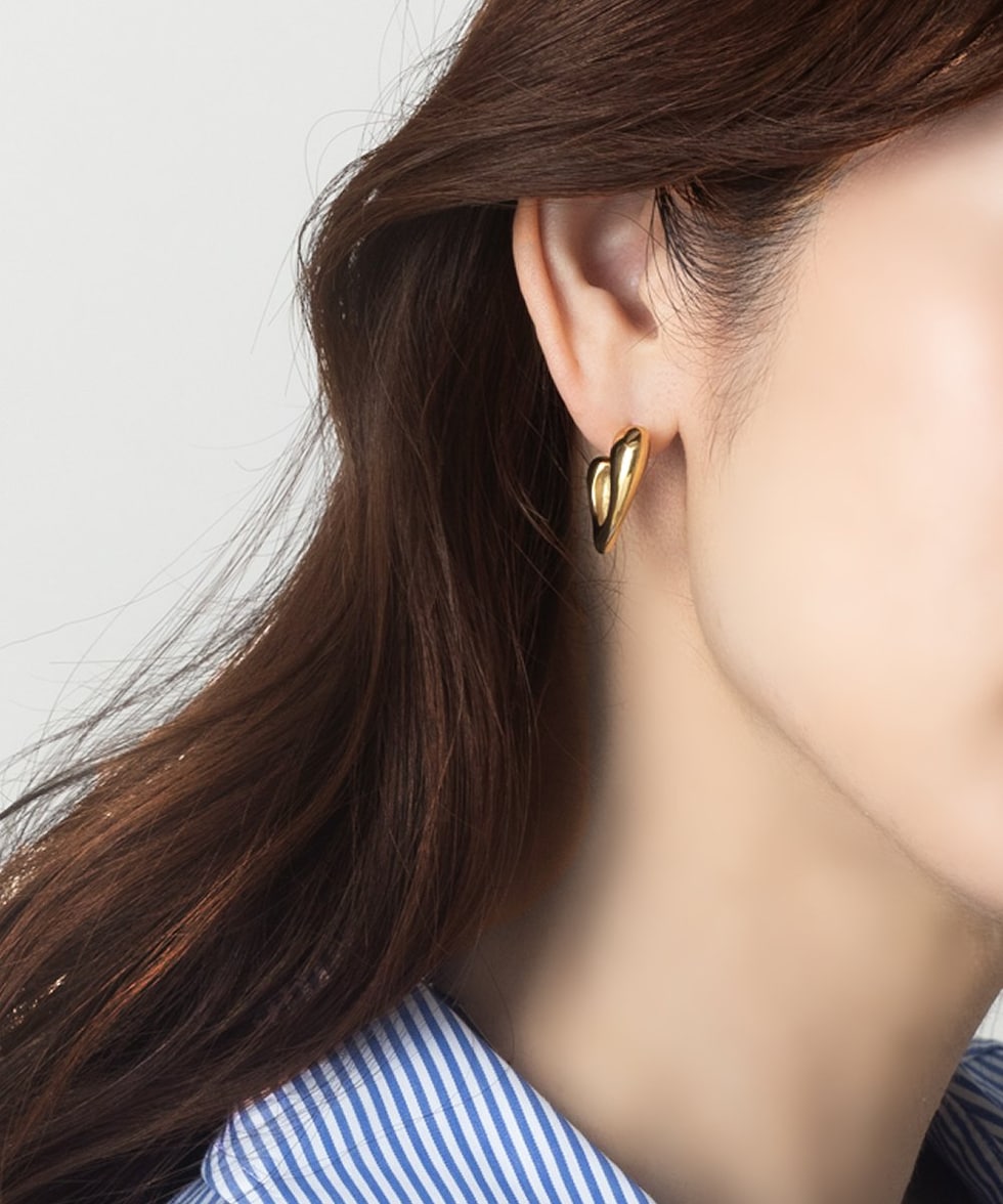 ドロップのようなぷっくりとしたシルエットのフープピアス。横から見るとさりげなくハートに見えるデザインが人気の秘密◎可愛くなりすぎないから大人コーデにも合わせやすいアイテムです。錆びにくく傷に強いステンレス製でデイリーに活躍しそう。