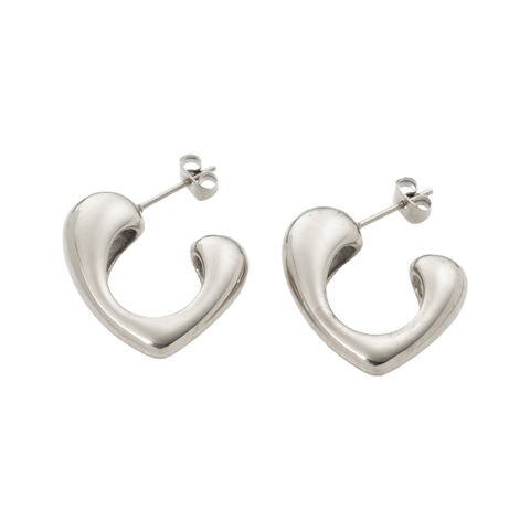 ドロップのようなぷっくりとしたシルエットのフープピアス。横から見るとさりげなくハートに見えるデザインが人気の秘密◎可愛くなりすぎないから大人コーデにも合わせやすいアイテムです。錆びにくく傷に強いステンレス製でデイリーに活躍しそう。