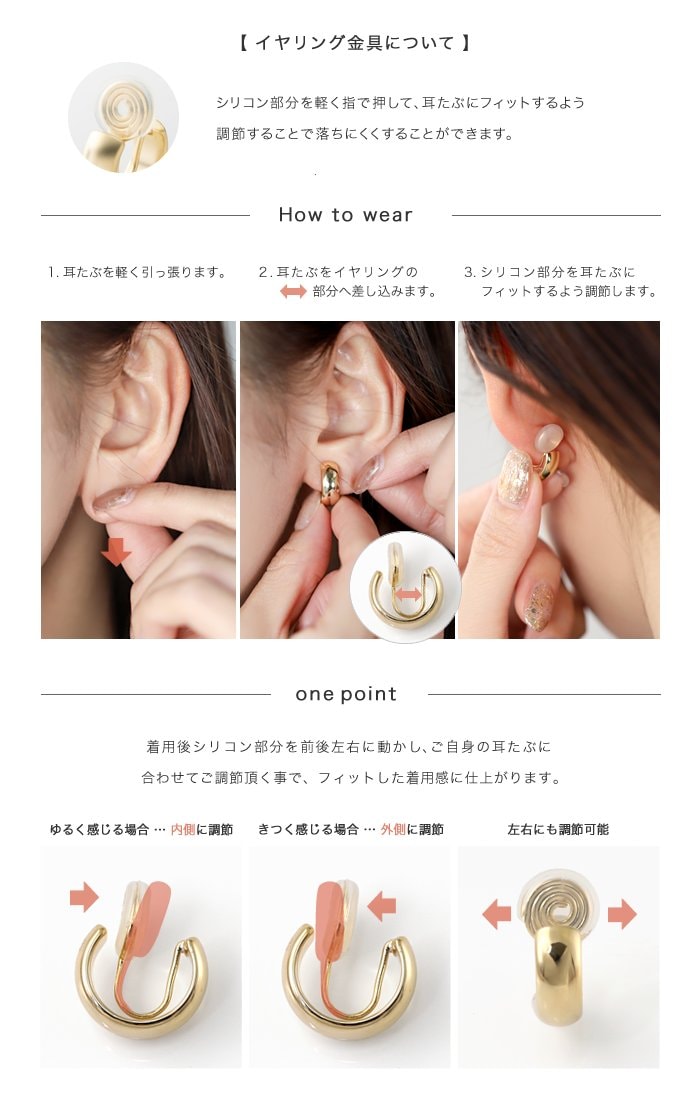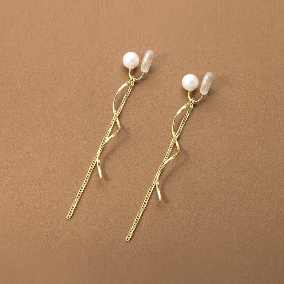 イヤリング ピアス レディース ポスト ワイヤーフィット 挟むだけ ピアス見え シリコンカバー パール ウェーブ メタル 揺れる cream dot ゆうパケット [ゴールド_イヤリング]