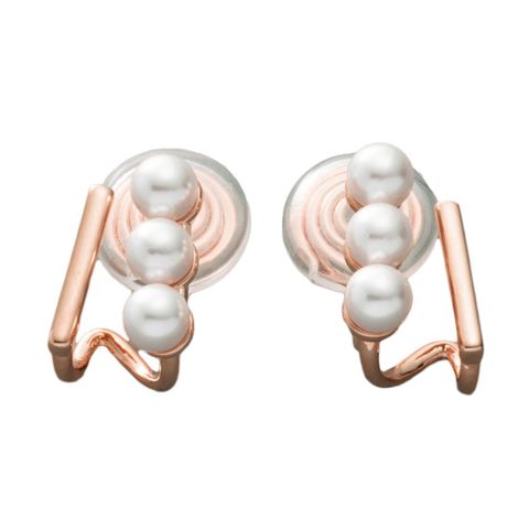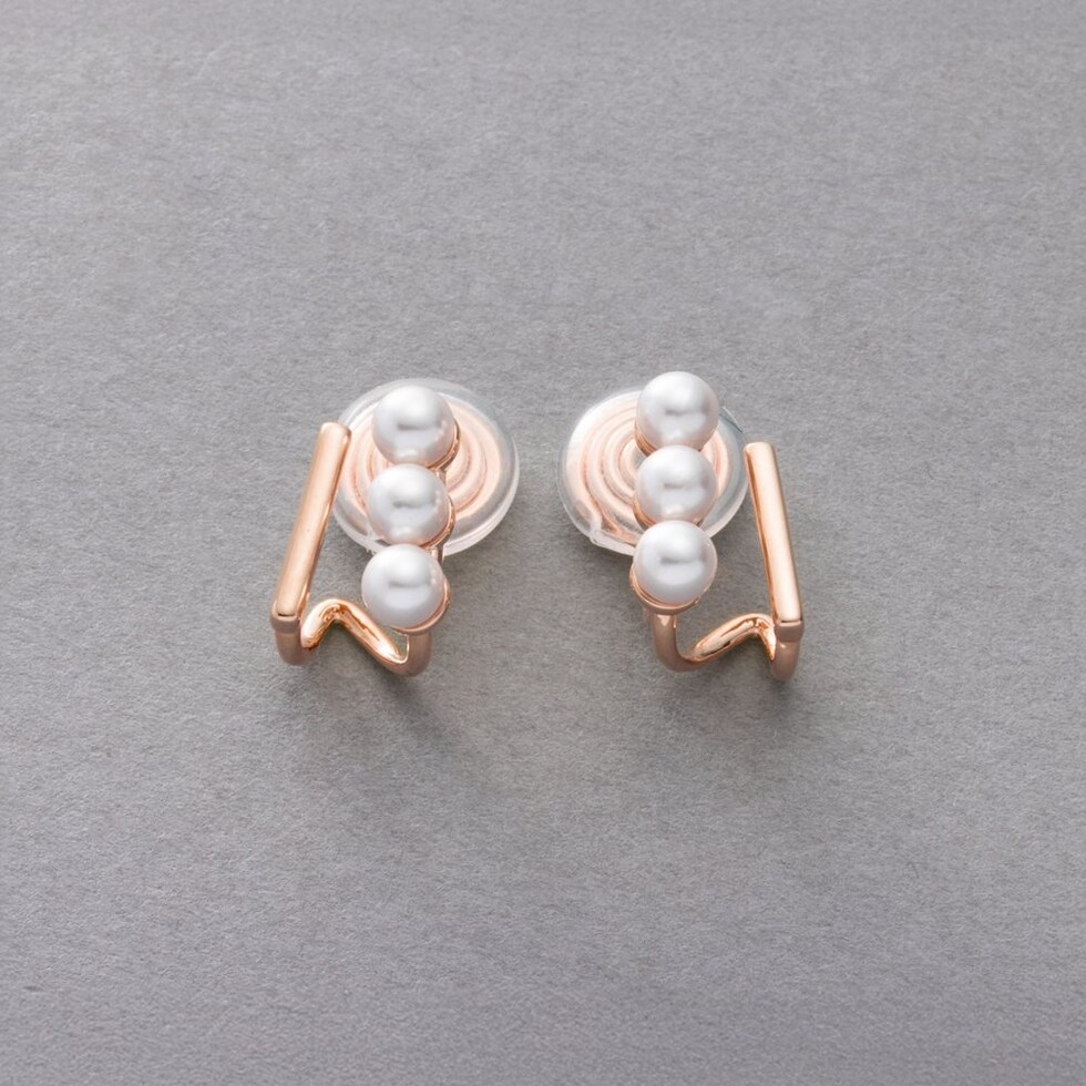 イヤリング レディース ワイヤーフィット 挟むだけ ピアス見え シリコンカバー 3連 パール メタル バー cream dot ゆうパケット [ピンクゴールド_イヤリング]