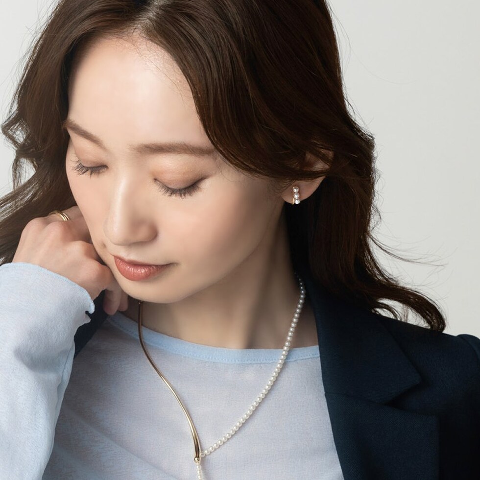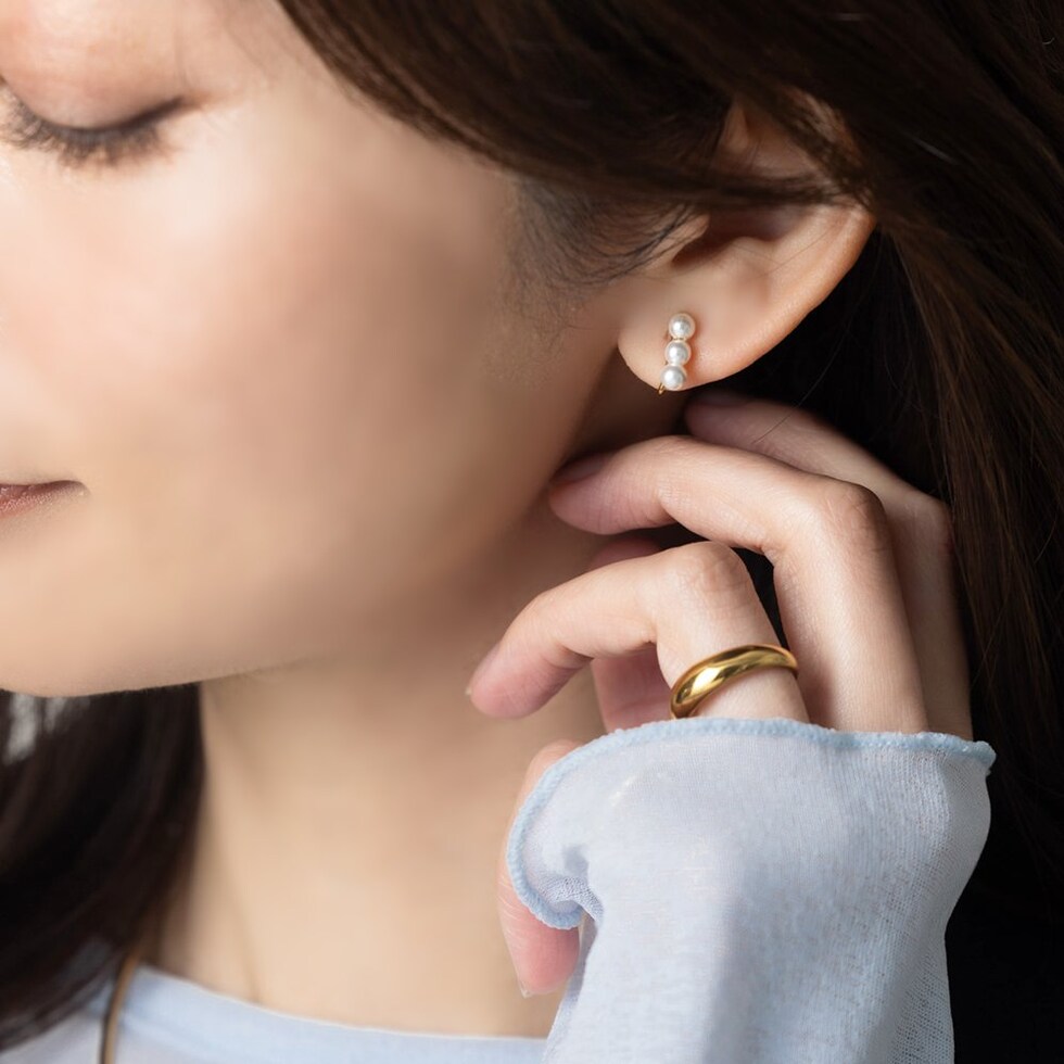 上品に艶めく3連パールのワイヤーフィットイヤリング。シンプルで洗練されたデザインが大人に似合うひと品。シリコンキャッチ付き&調整可能なイヤリング金具で、ピアスのようにすっきり見えるのがポイント◎長時間の着用も痛くなりにくく快適です。