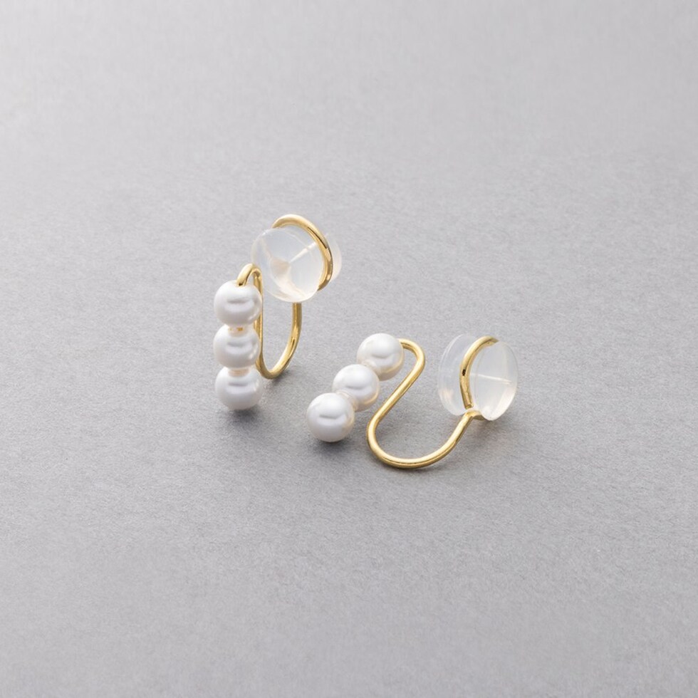 イヤリング レディース ワイヤーフィット 挟むだけ ピアス見え シリコンカバー 3連 パール 艶 cream dot ゆうパケット [ゴールド_イヤリング]