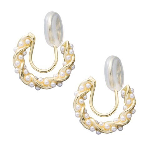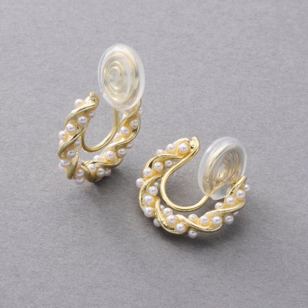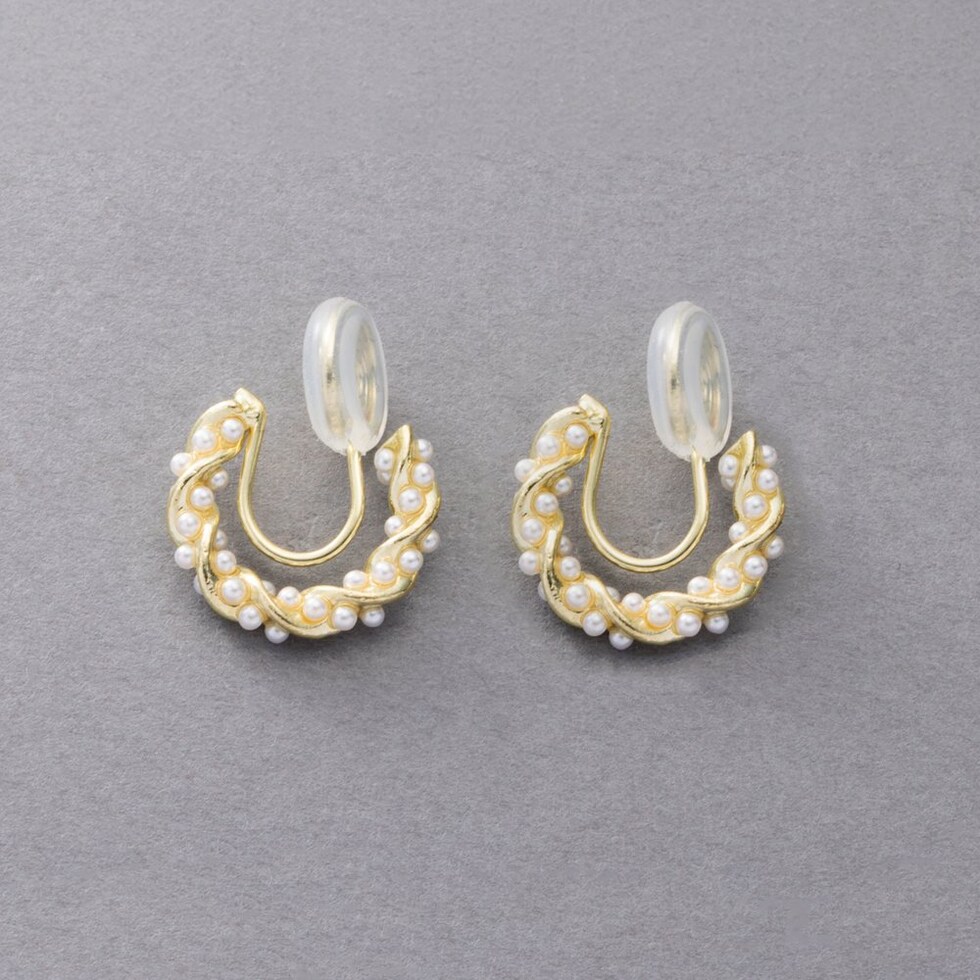 イヤリング レディース ワイヤーフィット 挟むだけ ピアス見え シリコンカバー 小粒 パール つぶつぶ メタル ツイスト cream dot ゆうパケット [ゴールド_イヤリング]