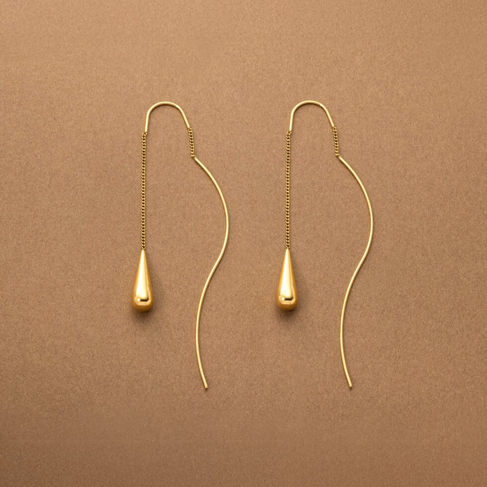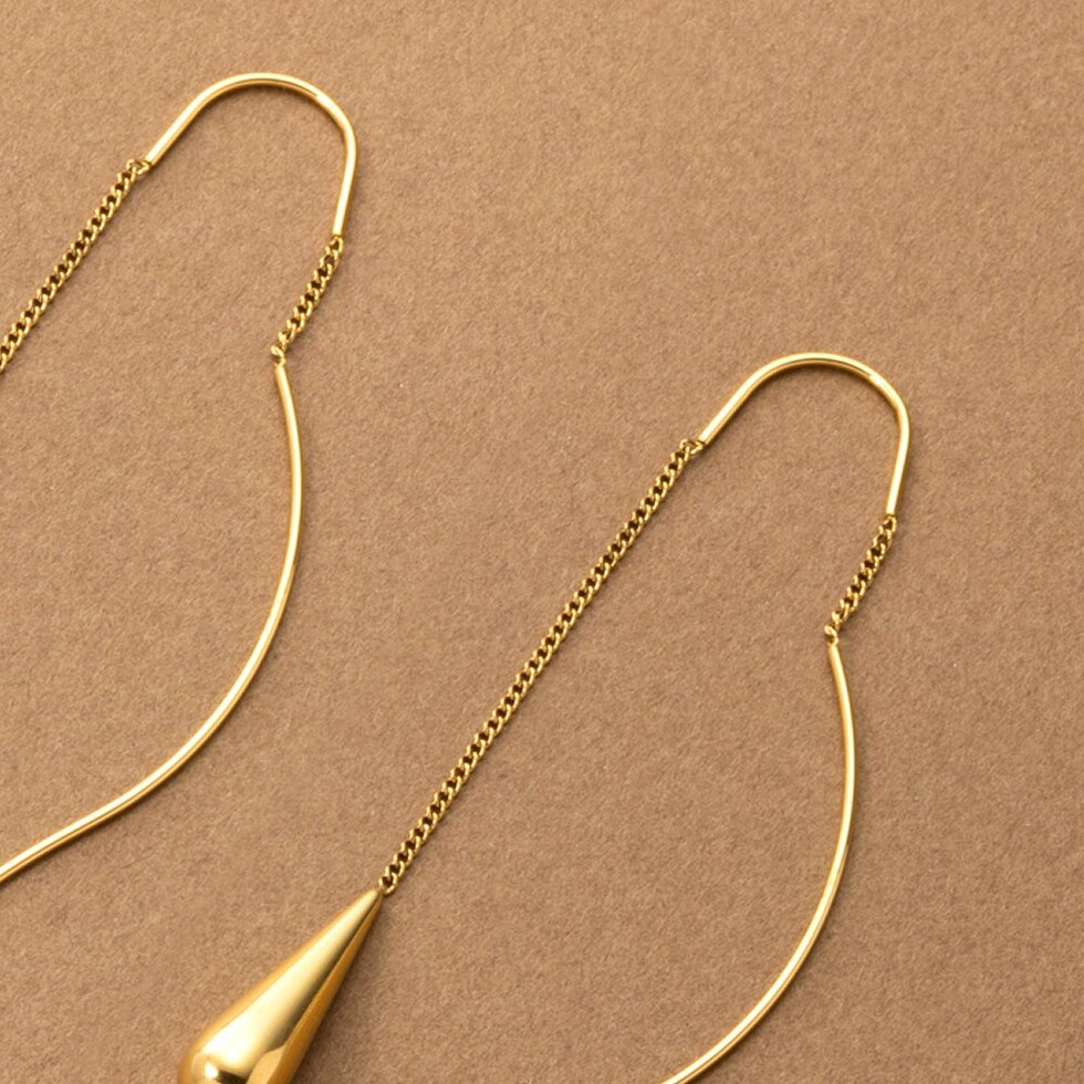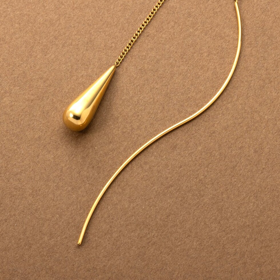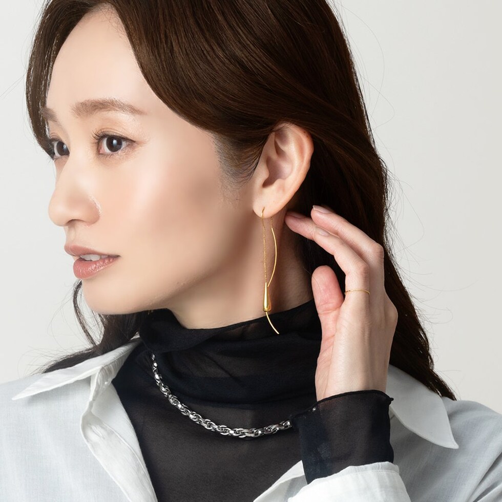 ドロップ×ウェーブラインのステンレス製アメリカンピアス。動くたびに揺らめく重厚感あるロングドロップでちょっぴり辛めな大人スタイルが完成。縦長効果もバツグンでお顔周りの華奢見せも期待できちゃいそう◎