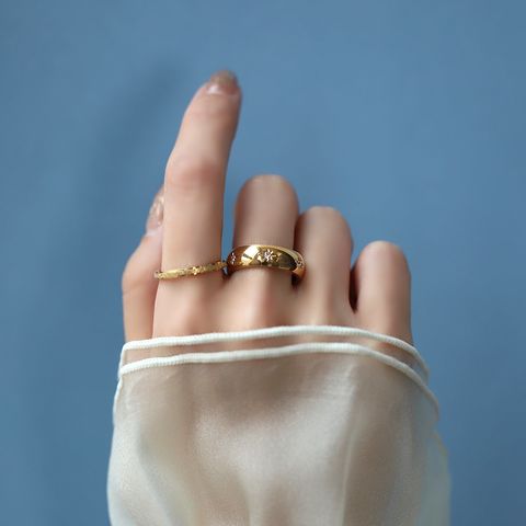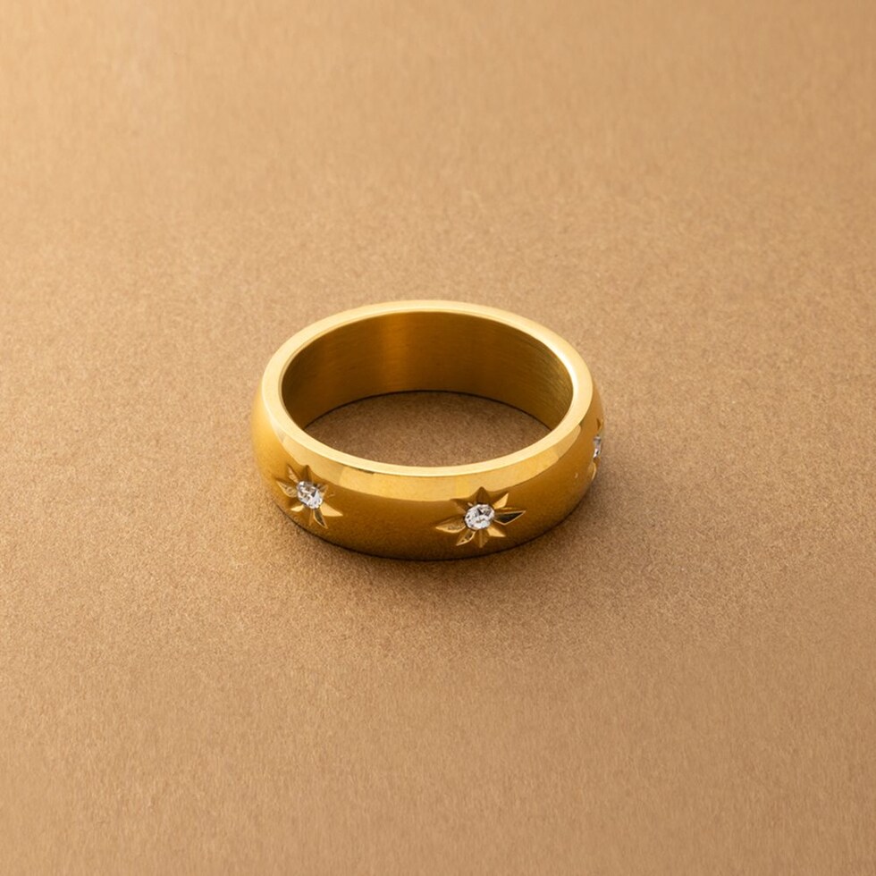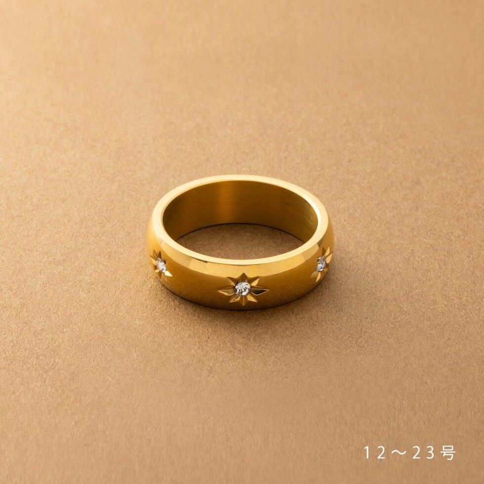 リング 指輪 ステンレス 金属アレルギー サージカルステンレス レディース つけっぱなし スター ストーン 甲丸リング 太め cream dot ゆうパケット [ゴールド_12号]
