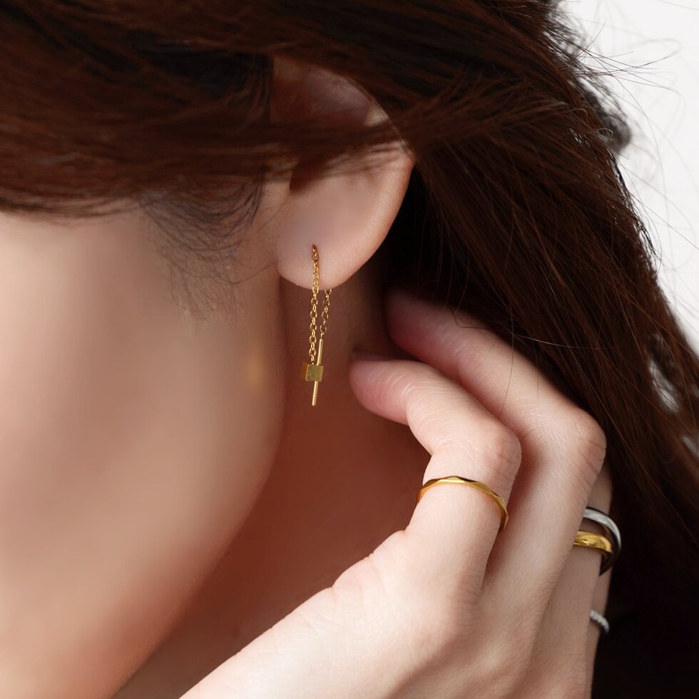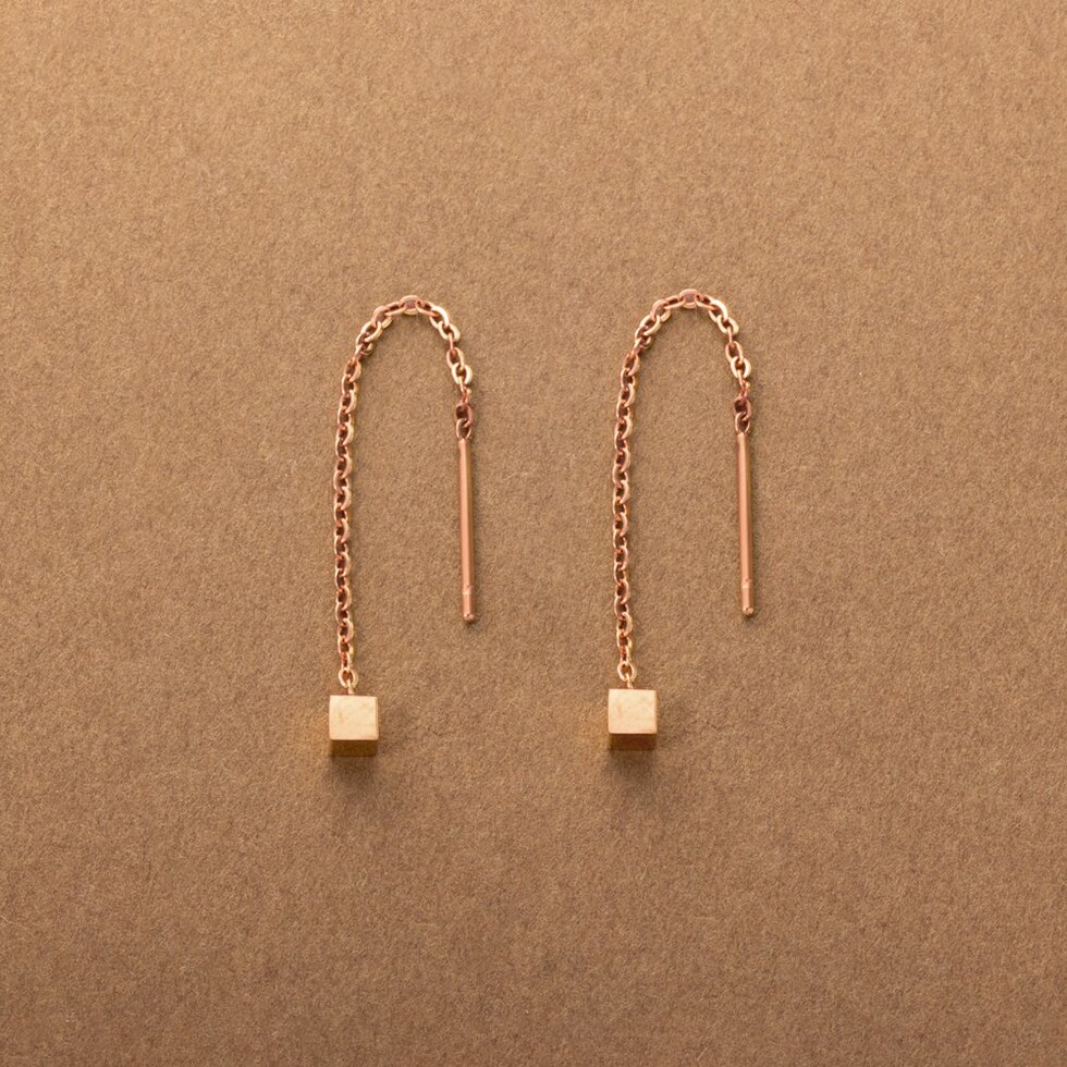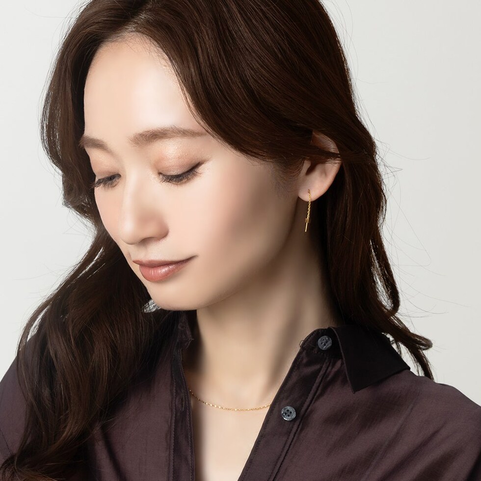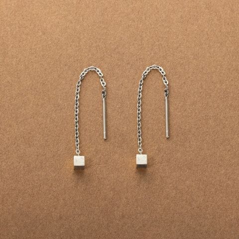 メタルキューブのステンレス製アメリカンピアス。ミディアム丈の絶妙な華奢感がバツグンに上品でセンスあり◎細かく長さ調節できるアメリカンピアスで、あなたのフェイスラインに合わせてこだわりのサイズ感を楽しんで。