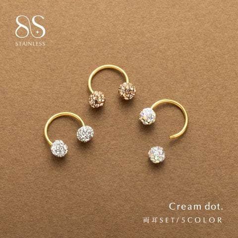 ピアス ステンレス 金属アレルギー サージカルステンレス レディース つけっぱなし 両側 ネジロック式 パヴェ ビジュー サーキュラー 両耳用 cream dot ゆうパケット [シルバー×オーロラ_ピアス]