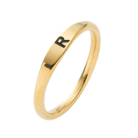 アルファベットが刻印されたシンプルなリング。細身のシェイプラインにイニシャルが映える、控えめながらも洗練されたデザイン。錆びにくく傷に強いステンレス製で、毎日使える大人のデイリーアクセにぴったりな一品です。