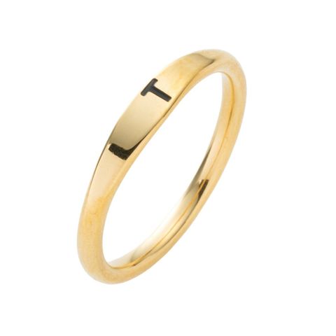 アルファベットが刻印されたシンプルなリング。細身のシェイプラインにイニシャルが映える、控えめながらも洗練されたデザイン。錆びにくく傷に強いステンレス製で、毎日使える大人のデイリーアクセにぴったりな一品です。