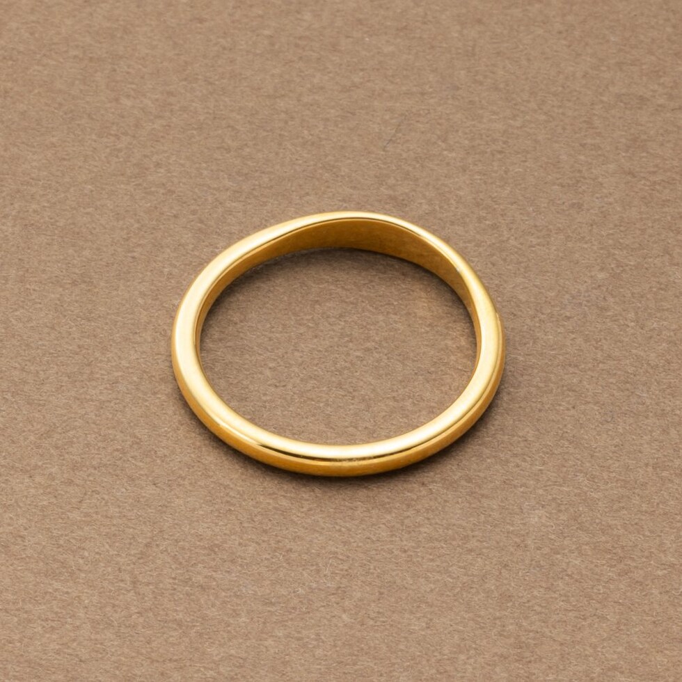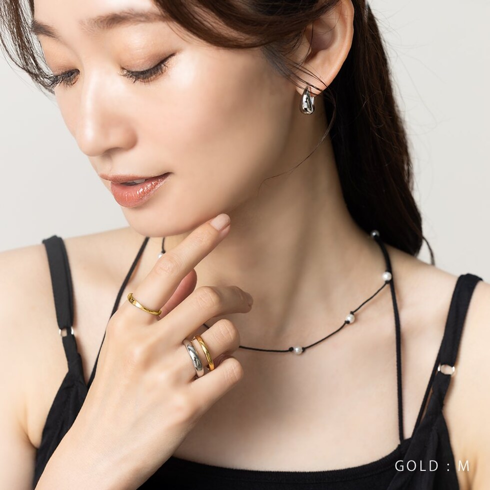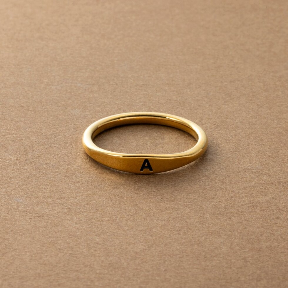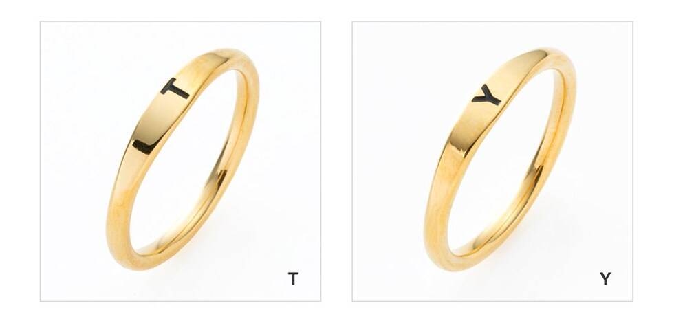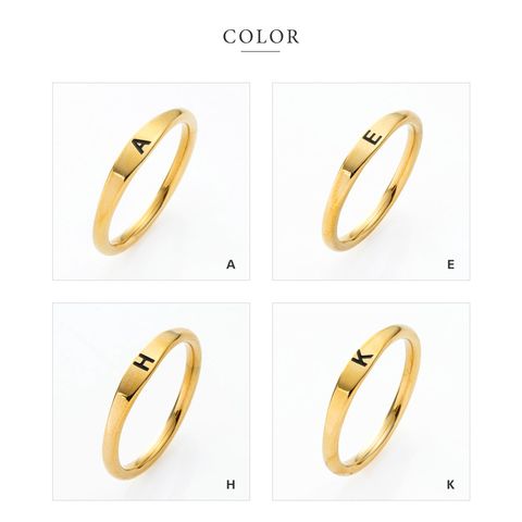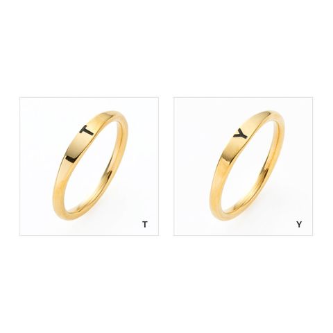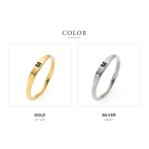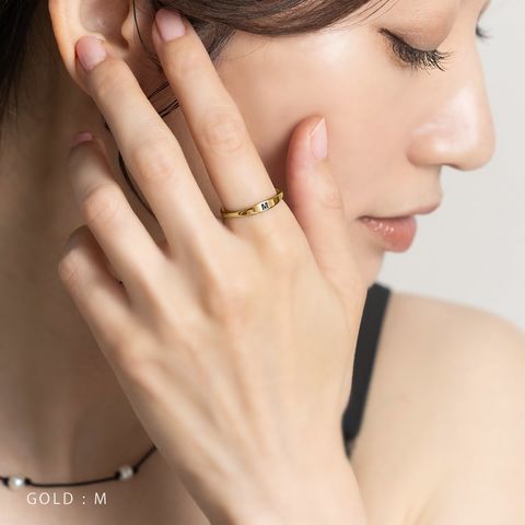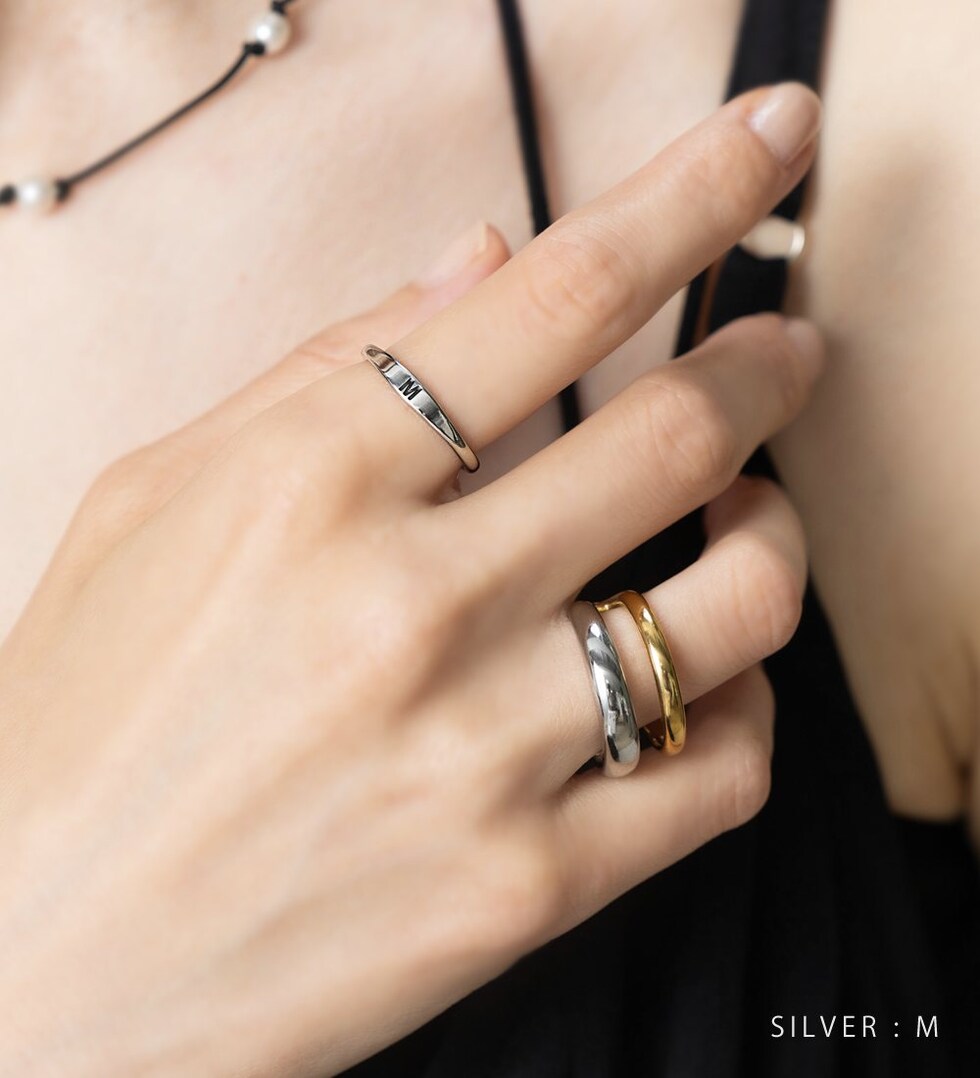 アルファベットが刻印されたシンプルなリング。細身のシェイプラインにイニシャルが映える、控えめながらも洗練されたデザイン。錆びにくく傷に強いステンレス製で、毎日使える大人のデイリーアクセにぴったりな一品です。