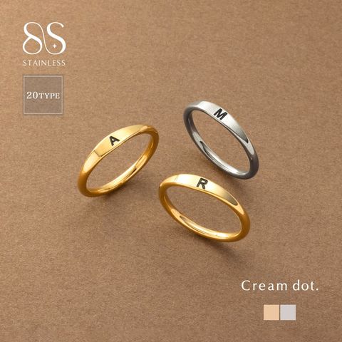 リング 指輪 ステンレス 金属アレルギー サージカルステンレス レディース つけっぱなし イニシャル アルファベット 刻印 シェイプライン cream dot ゆうパケット [シルバー:N_15号]