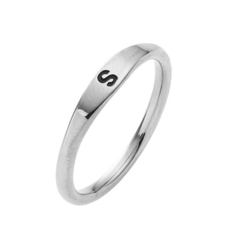 アルファベットが刻印されたシンプルなリング。細身のシェイプラインにイニシャルが映える、控えめながらも洗練されたデザイン。錆びにくく傷に強いステンレス製で、毎日使える大人のデイリーアクセにぴったりな一品です。