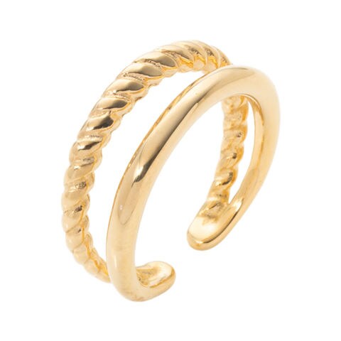 リング 指輪 ステンレス 金属アレルギー サージカルステンレス レディース つけっぱなし オープンリング ツイスト メタル 甲丸 レイヤード風 cream dot ゆうパケット [ゴールド_15号]