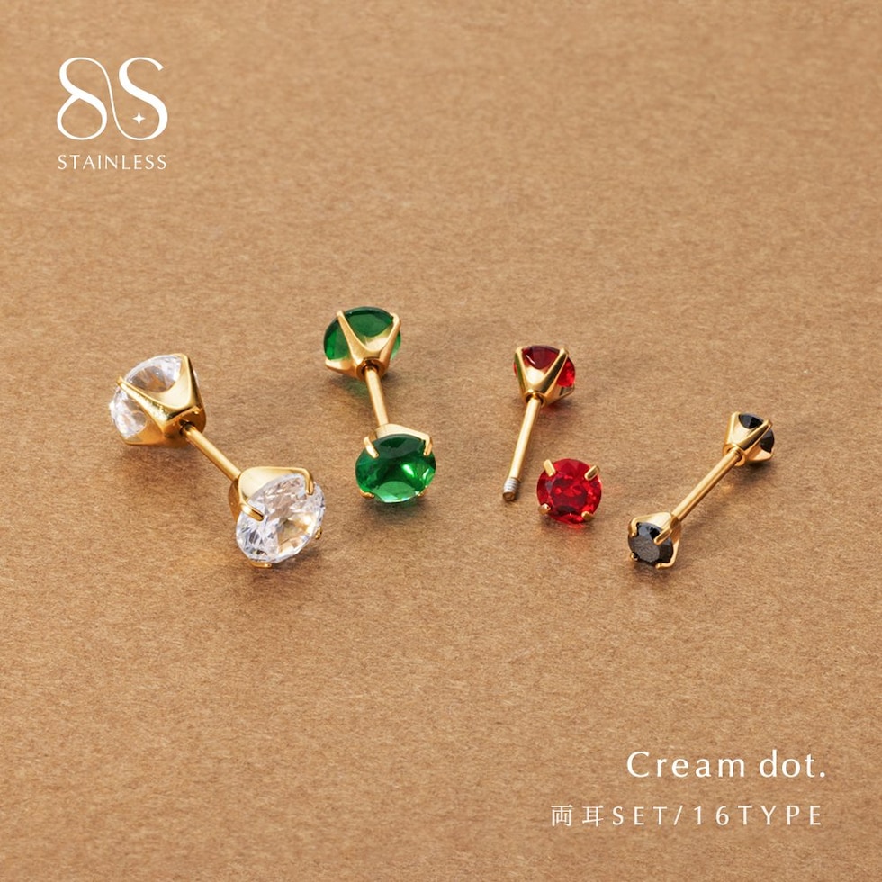 ピアス ステンレス 金属アレルギー サージカルステンレス レディース つけっぱなし ネジロック式 両側 キャッチ ビジュー カラーストーン キレイ色 一粒 4サイズ 両耳用 cream dot ゆうパケット [グリーン_5mm]