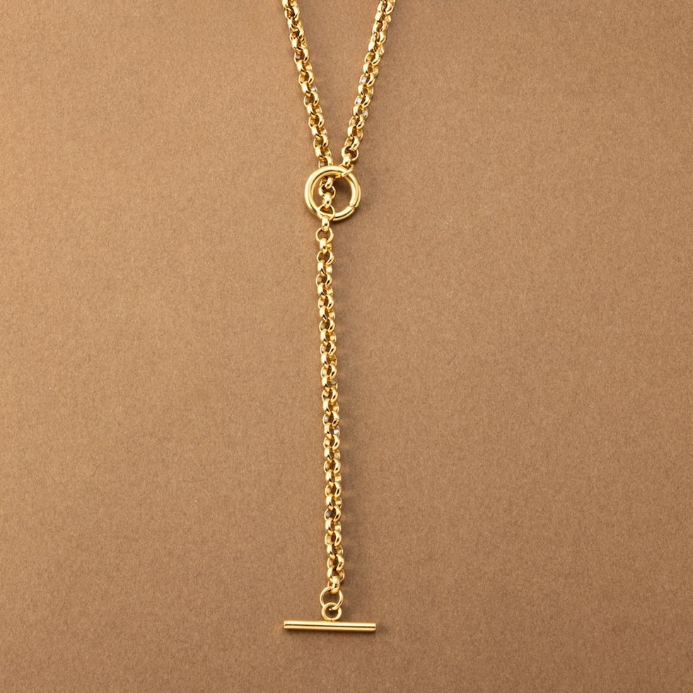 ネックレス ステンレス 金属アレルギー サージカルステンレス レディース つけっぱなし ロング チェーン マンテル メタルチェーン Y字 長さ調節 cream dot ゆうパケット [ゴールド_ワンサイズ]